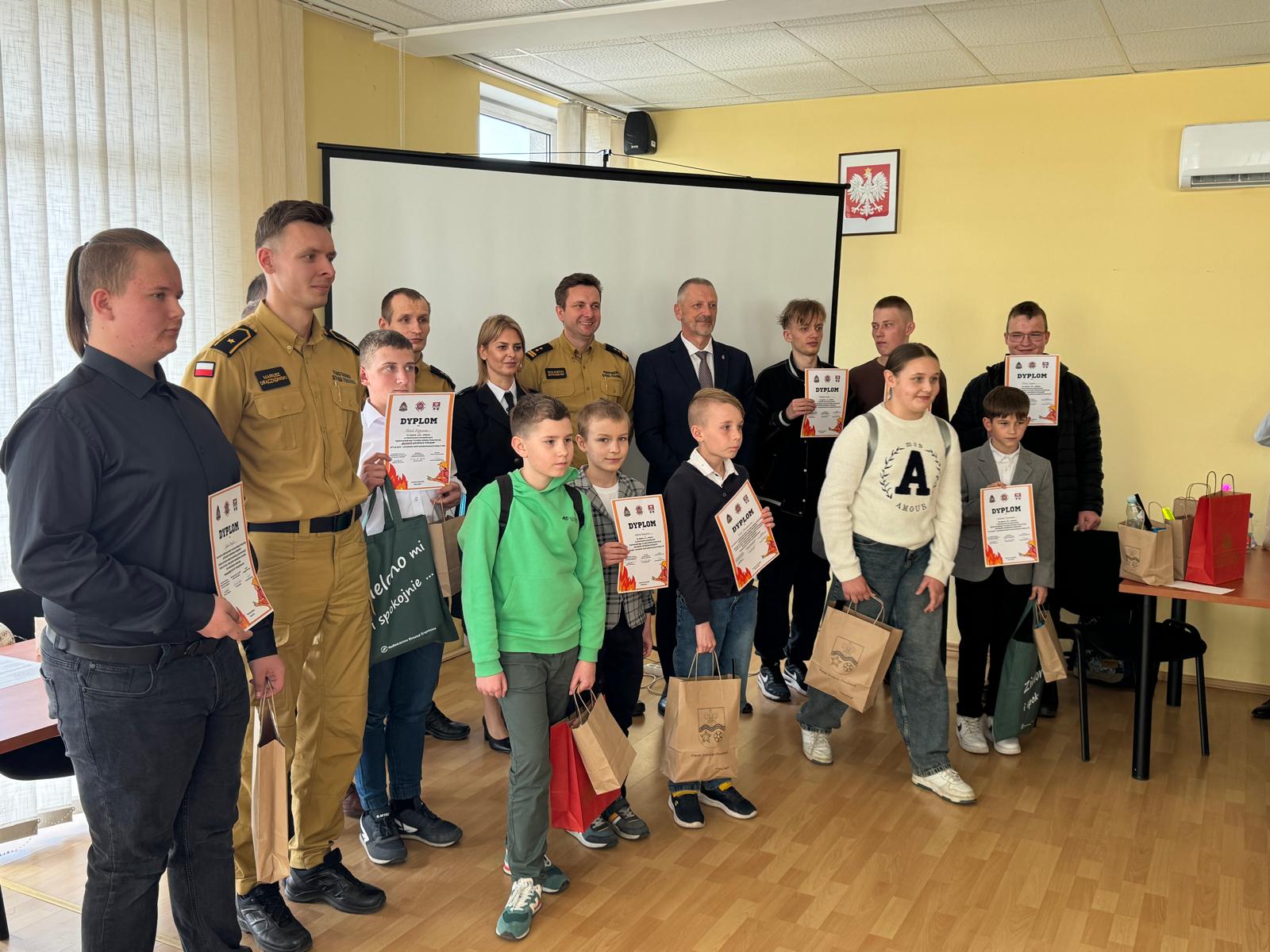 W trakcie uroczystości wręczenia nagród wszyscy uczestnicy otrzymali pamiątkowe dyplomy, natomiast laureaci trzech pierwszych miejsc w każdej grupie wiekowej zostali wyróżnieni nagrodami rzeczowymi. Wyróżnienia wręczyli Starosta Strzelecko-Drezdenecki, Pan Radosław Świekatowski, oraz Komendant Powiatowy PSP w Strzelcach Krajeńskich, bryg. mgr inż. Wojciech Witkowski.