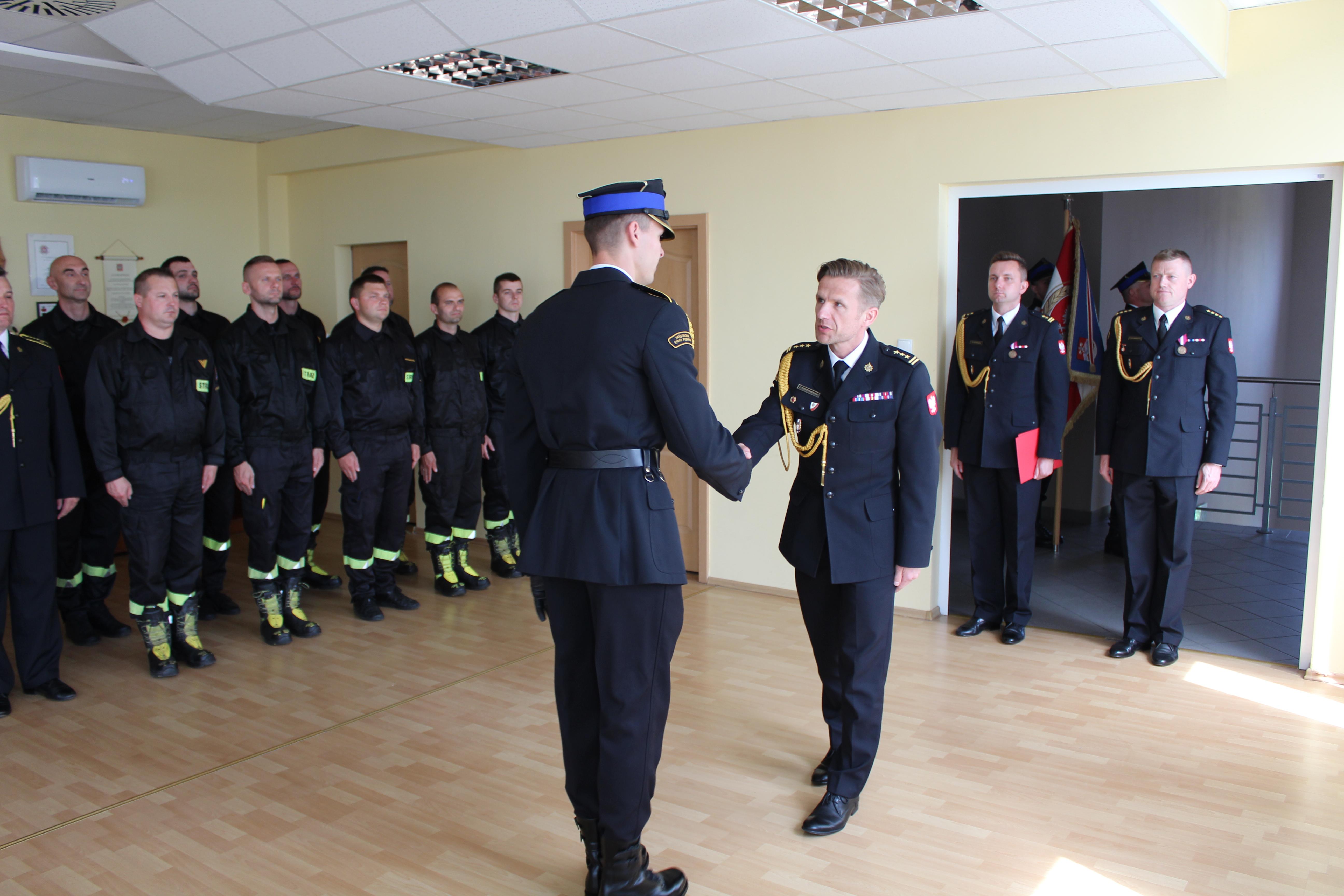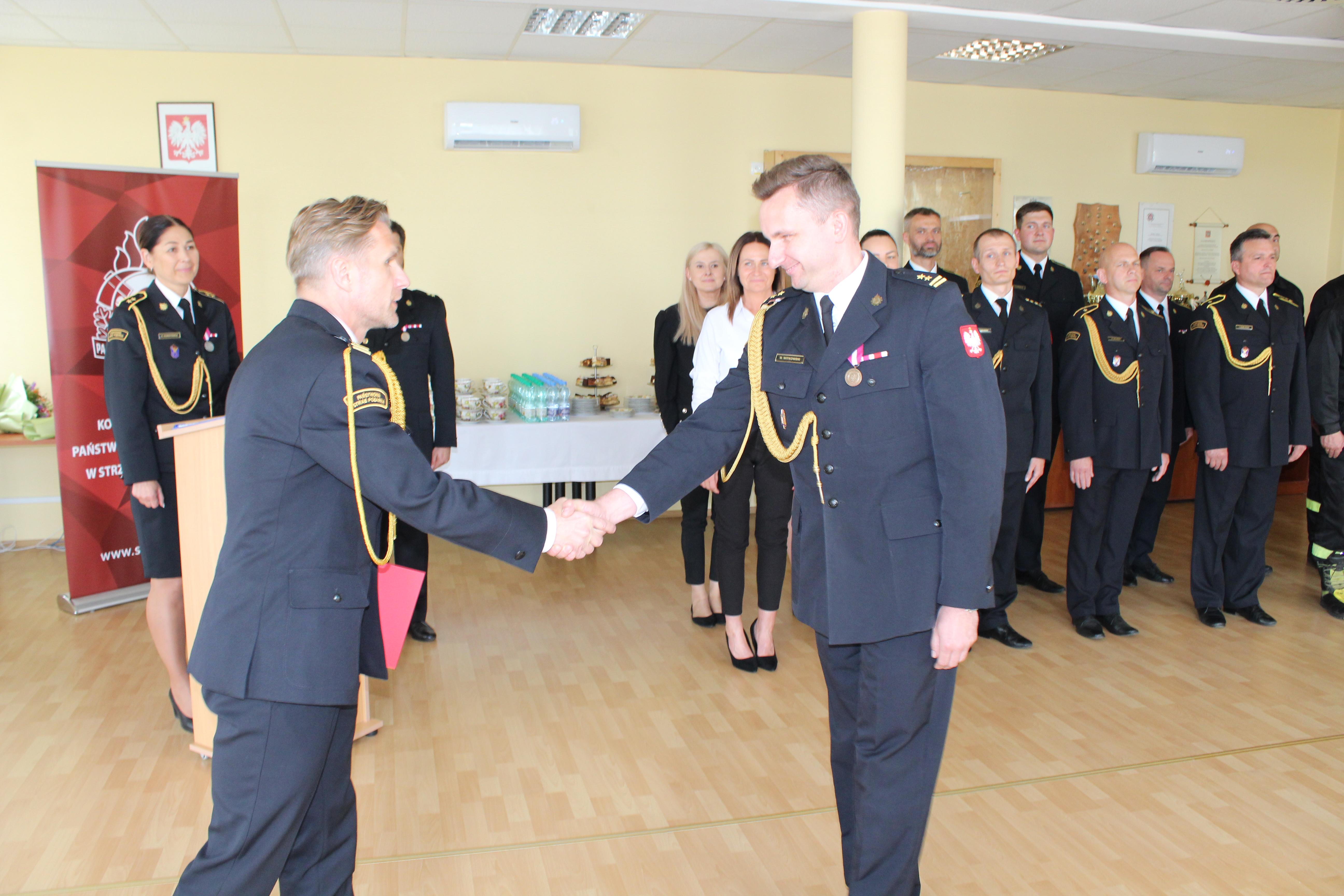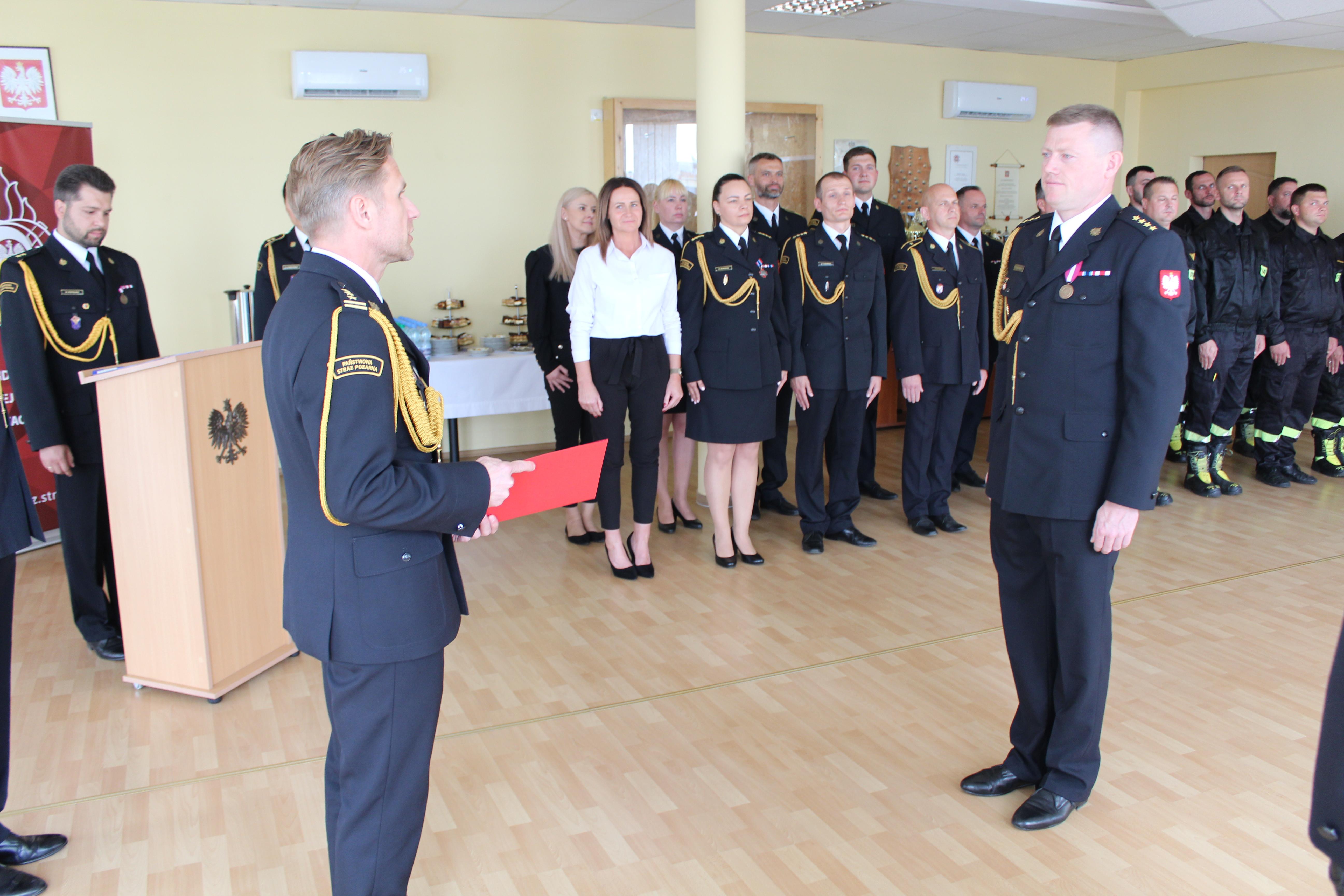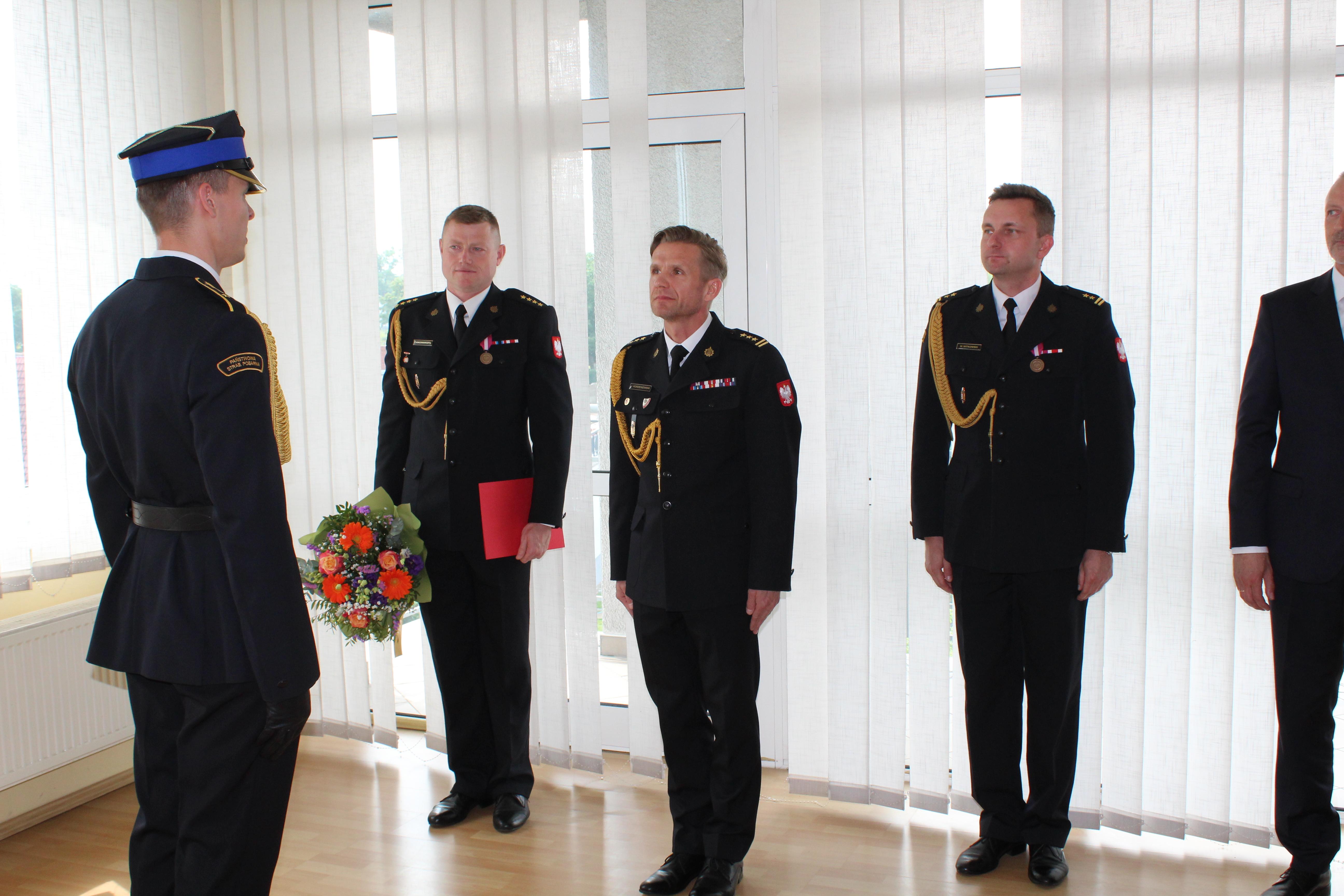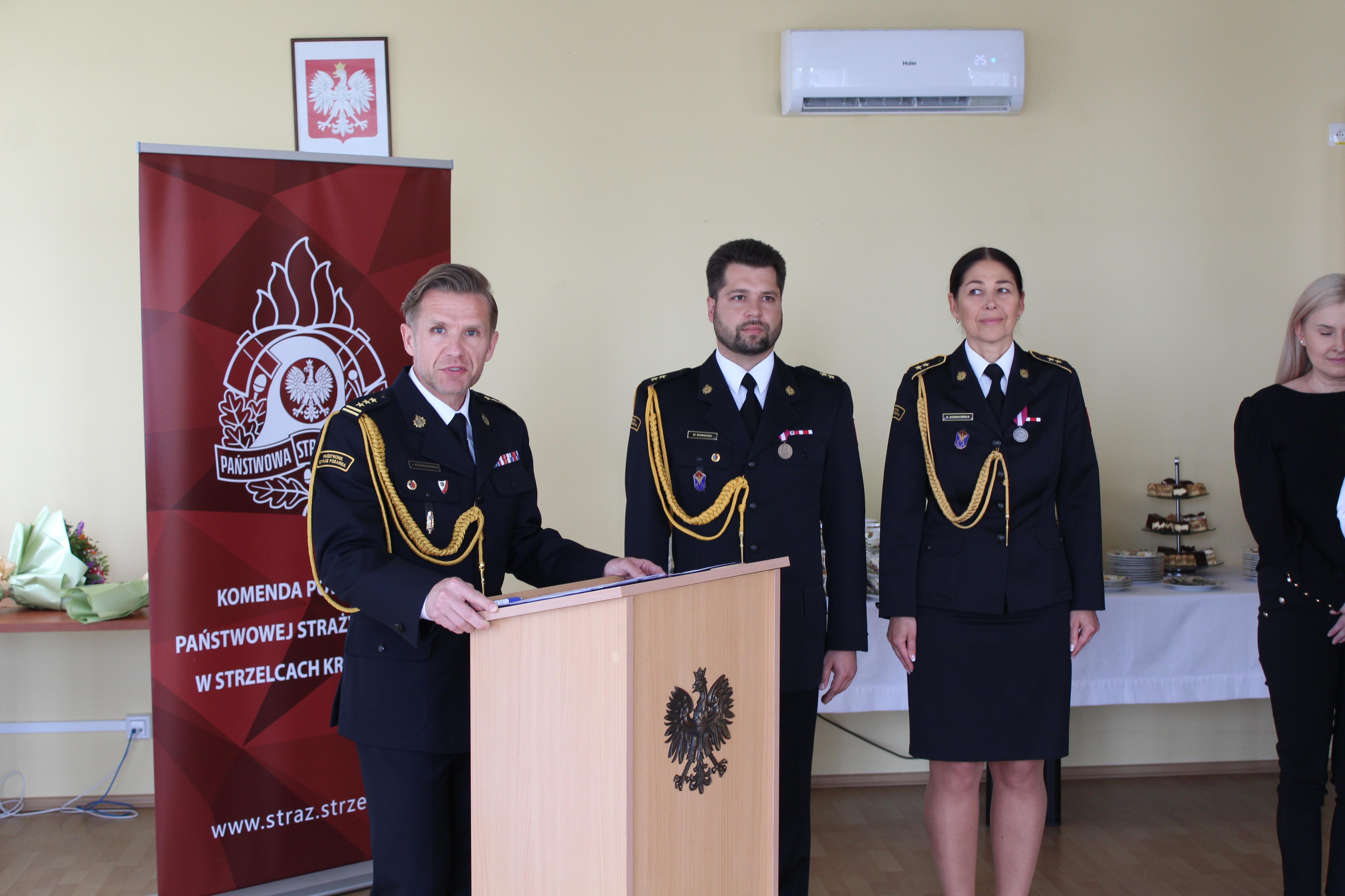 Decyzje personalne oficerom Państwowej Straży Pożarnej wręczył w siedzibie Komendy Powiatowej PSP w Strzelcach Krajeńskich Zastępca Lubuskiego Komendanta Wojewódzkiego PSP st. bryg. Jarosław Korzeniewski w obecności zaproszonych gości – Starosty Strzelecko-Drezdeneckiego Pana Radosława Świekatowskiego oraz Wicestarosty i zarazem Prezesa Zarządu Powiatowego Związku Ochotniczych Straży Pożarnych RP – Pana Bogusława Kierusa, a także strażaków i pracowników strzeleckiej komendy.