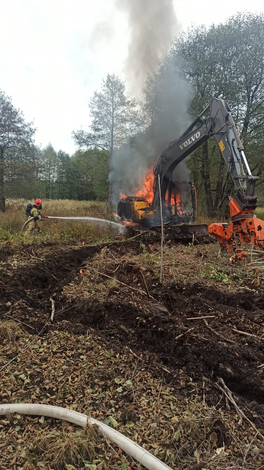 Pożar koparki w okolicy miejscowości Goszczanowiec