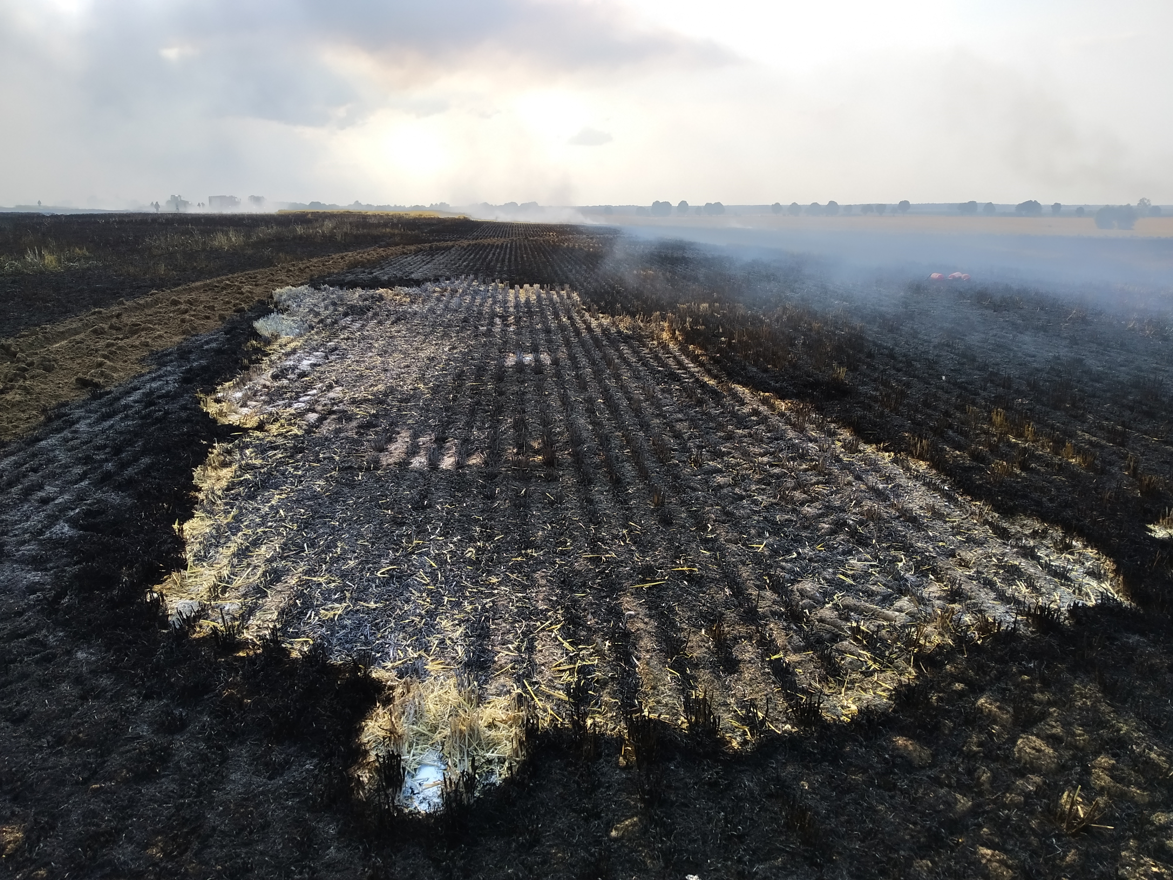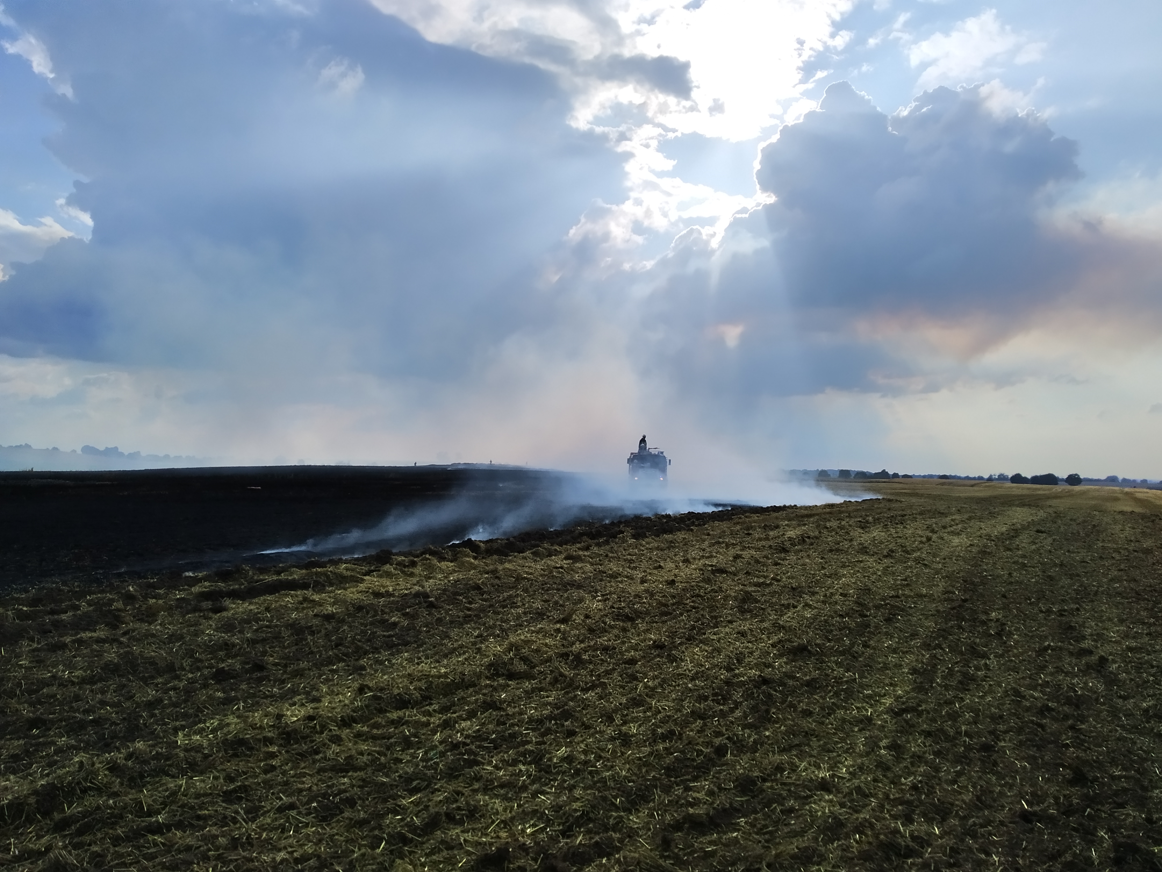 We wszystkich tych zdarzeniach znaczącym utrudnieniem w prowadzeniu działań są silne podmuchy wiatru towarzyszące pożarom na dużych powierzchniach. Silny wiatr w połączeniu z wysoką temperaturą mogą sprawić, że nawet jedna wykrzesana iskra niesie ze sobą wysokie ryzyko pożaru. Jak pokazuje przykład z Ługów – pożar można szybko ugasić w zarodku dysponując odpowiednią ilością środków gaśniczych (gaśnice proszkowe, lub beczka z wodą), dlatego też apelujemy do rolników aby starali się zapewnić odpowiednią ilość wody bądź gaśnic w czasie prowadzenia żniw, przede wszystkim w czasie pracy kombajnów. Pożar łatwo ugasić w zarodku, kiedy się rozprzestrzeni sprawa jest o wiele trudniejsza.