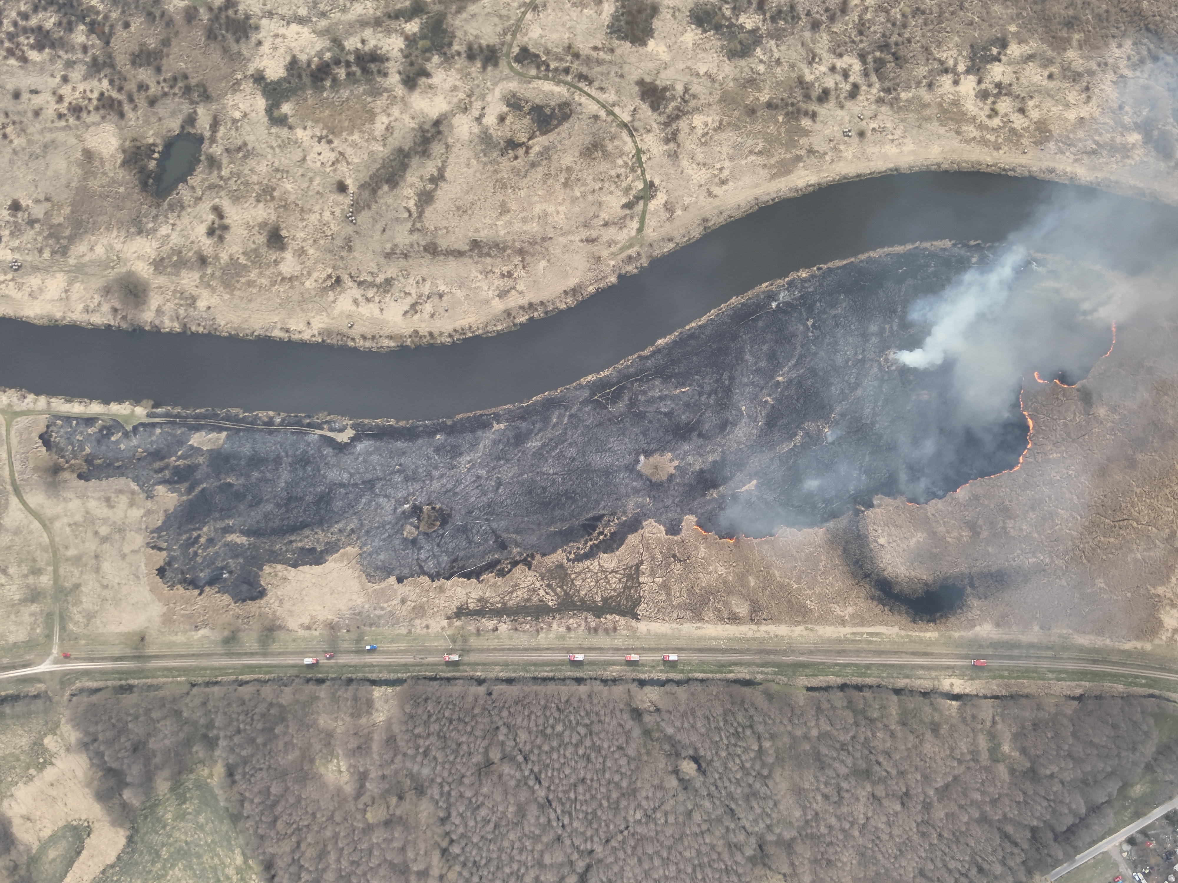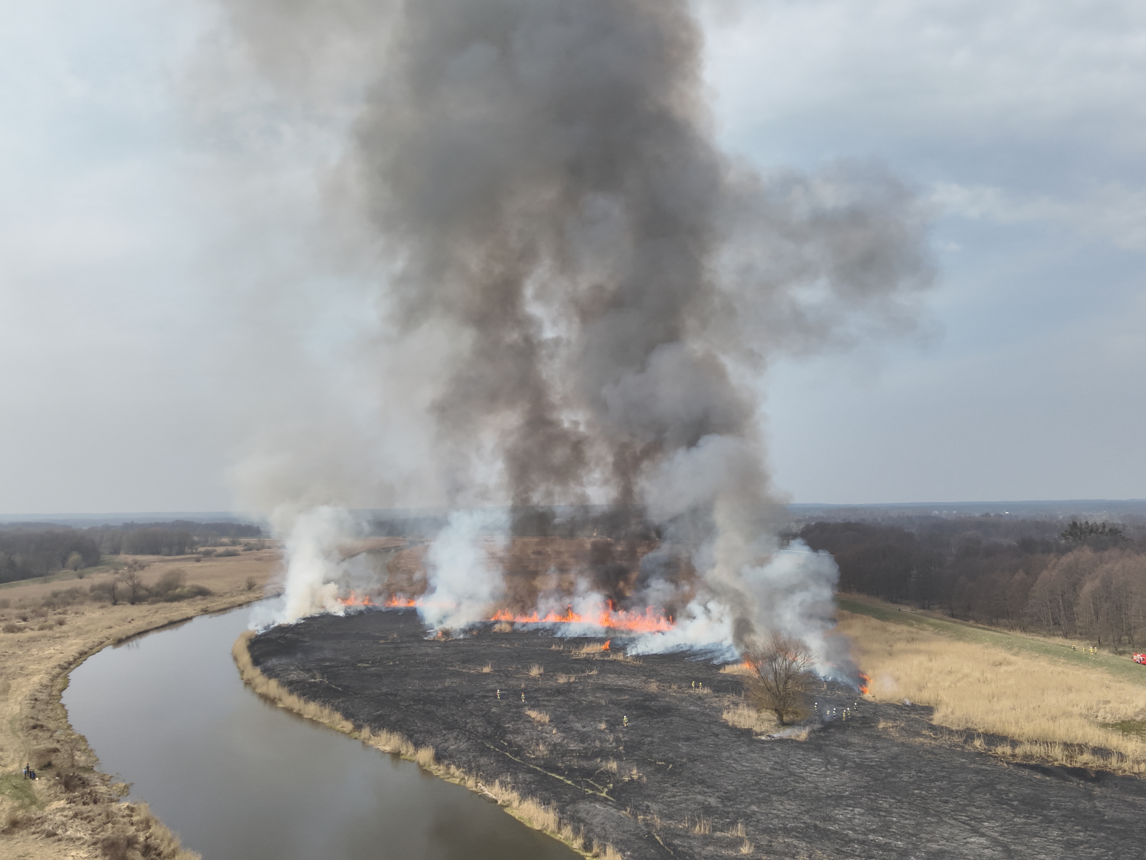 Kolejne zgłoszenie o godzinie 17:58 – ponownie pożar nieużytków przy rzece Noteć w okolicy Górecka, ale tym razem w innym miejscu i na mniejszą skalę. Na miejsce skierowane zostały 4 zastępy, które uporały się z pożarem w ciągu godziny.