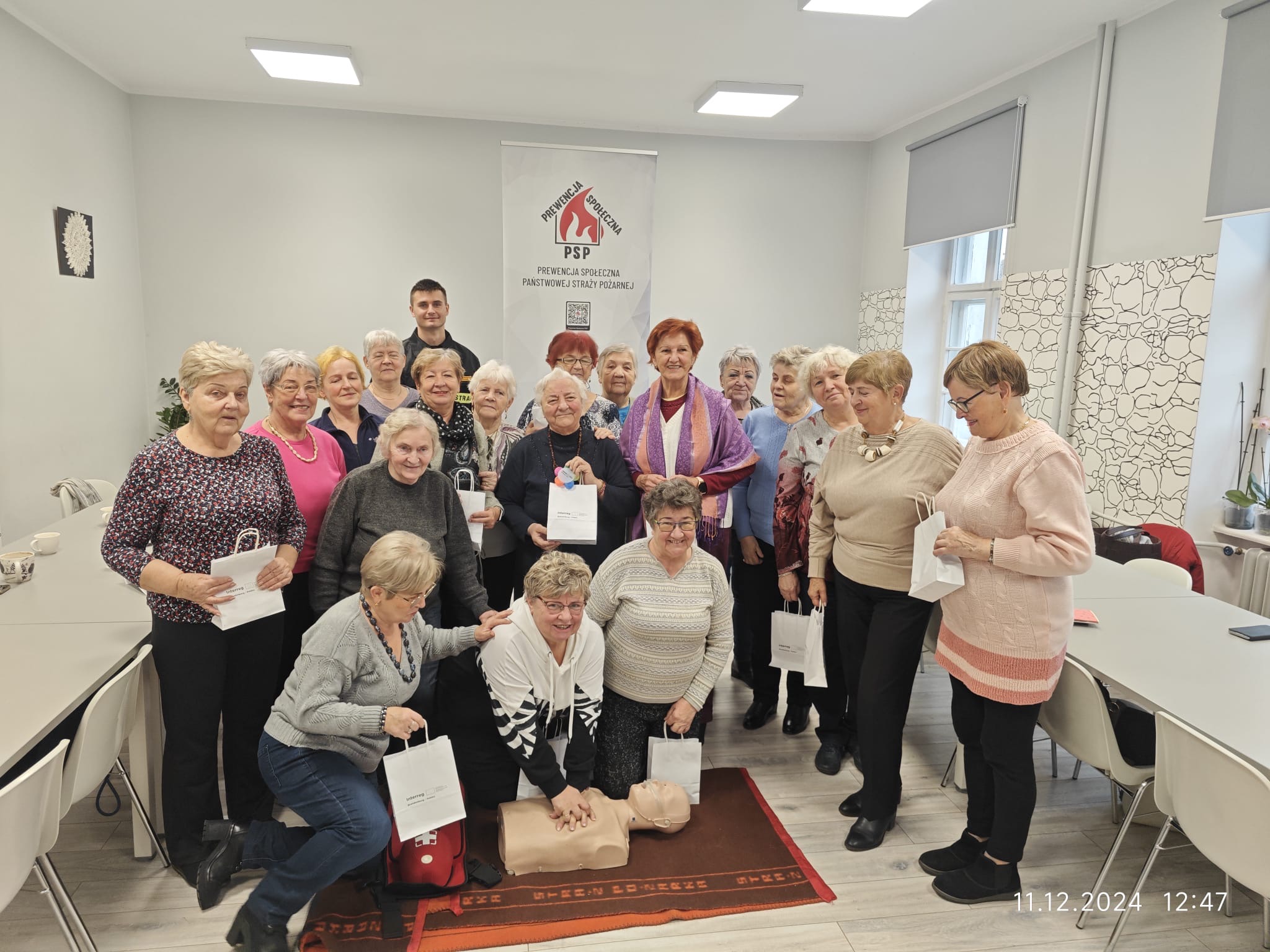 W dniu 11 grudnia 2024 r. w ramach unijnego projektu „Lepiej zapobiegać niż ratować”, realizowanego w ramach Programu Współpracy Interreg VI A Brandenburgia - Polska 2021-2027 funkcjonariusze Komendy Powiatowej Państwowej Straży Pożarnej odwiedzili Klub Seniora, by porozmawiać o bezpieczeństwie w codziennym życiu, zasadach udzielania pierwszej pomocy oraz zagrożeniach mogących wystąpić w domu i otoczeniu.