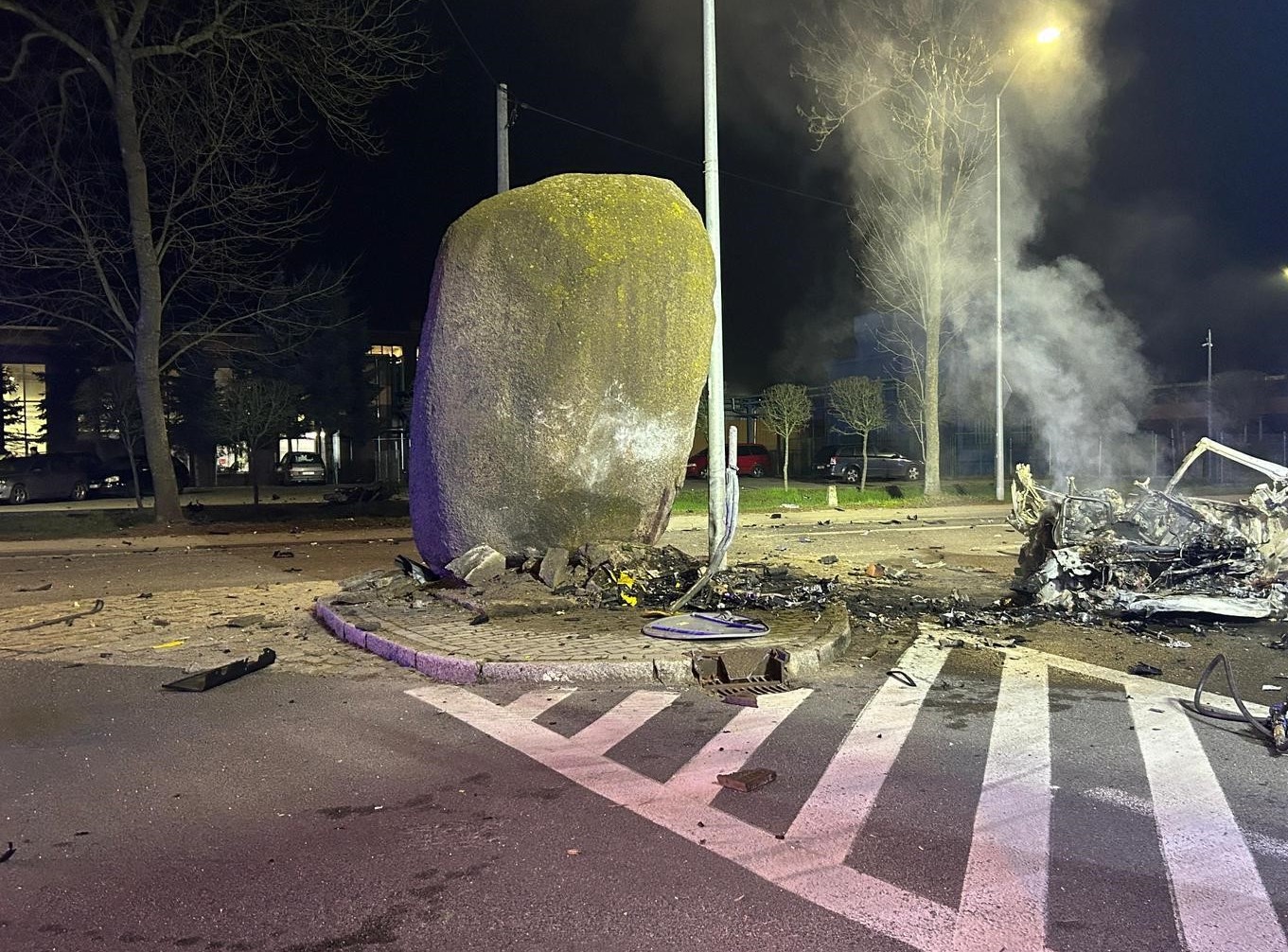 W dniu 14 marca 2024 roku przed godziną 1:00 w nocy w miejscowości Drezdenko, na skrzyżowaniu dróg wojewódzkich nr 160 i nr 174 doszło do tragicznego wypadku. Samochód osobowy marki BMW z dużą prędkością wjechał w głaz narzutowy. Siła uderzenia przesunęła kilkunastotonowy głaz, rozrzuciła szczątki pojazdu na znaczną odległość, pojazd po zderzeniu stanął w płomieniach. Na miejsce zdarzenia zadysponowano 5 zastępów straży pożarnych, Policję Zespół Ratownictwa Medycznego. Niestety w zdarzeniu tym kierujący pojazdem mężczyzna poniósł śmierć na miejscu. Działania strażaków skupiły się na ugaszeniu płonącego pojazdu, zabezpieczeniu miejsca zdarzenia, przeszukania okolicy pod kątem ewentualnych innych poszkodowanych. Na miejsce dotarł oficer operacyjny PSP. Szczegółowe przyczyny i okoliczności zdarzenia wyjaśnia Policja wraz z prokuraturą