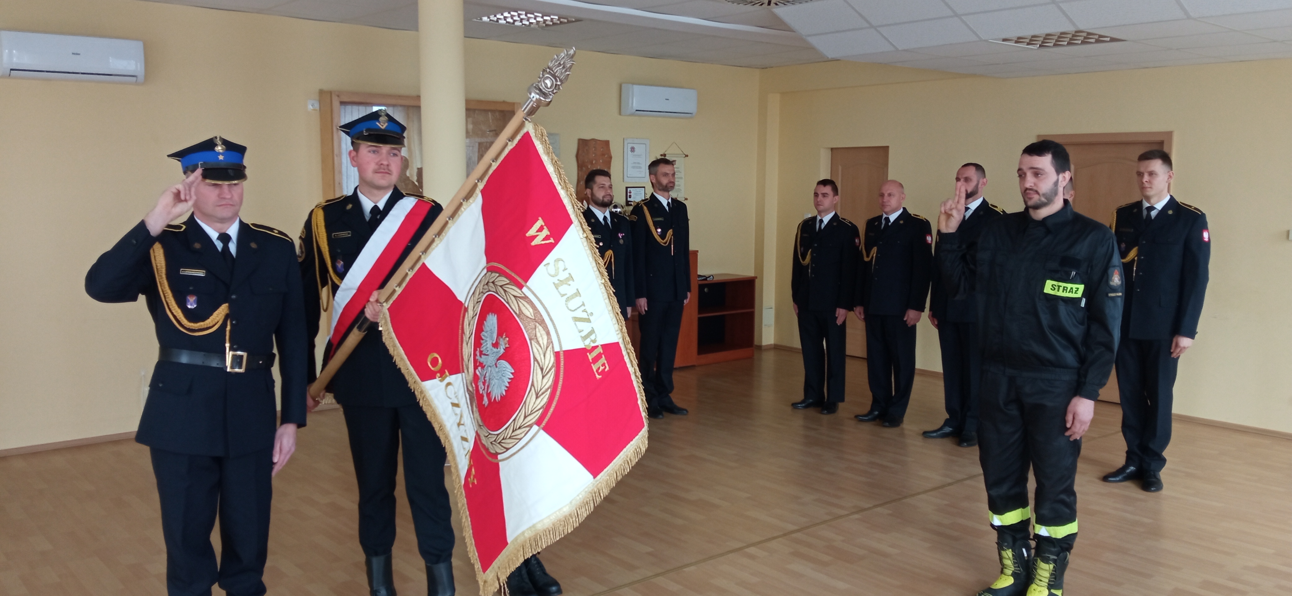 Uroczyste ślubowanie złożył strażak Piotr Sosiński, który rozpoczął służbę przygotowawczą w Jednostce Ratowniczo-Gaśniczej w Strzelcach Krajeńskich.