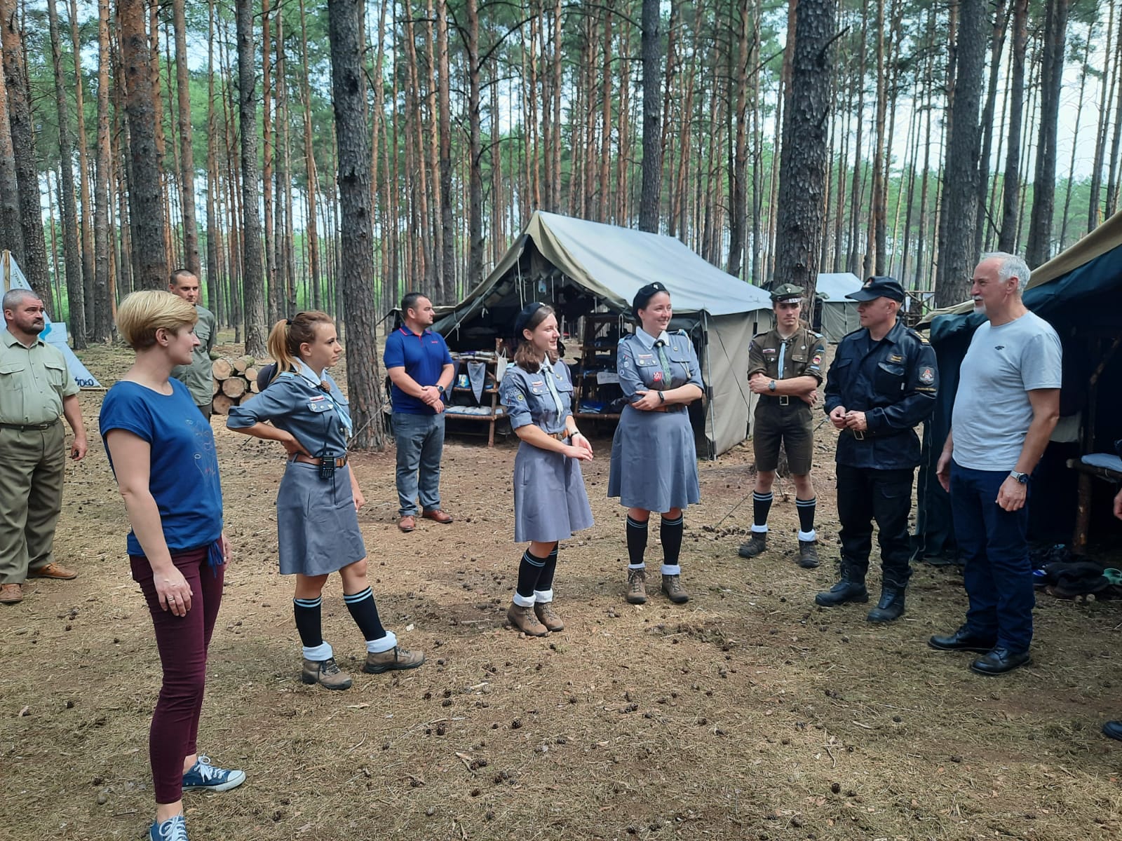 W piątek 16 lipca 2021 r. odbyła się wizytacja obozów harcerskich zorganizowanych na terenie Nadleśnictwa Karwin w okolicach Gościmia i Lubiatowa. Z inicjatywy starosty strzelecko-drezdeneckiego – Pana Bogusława Kierusa przedstawiciele służb i inspekcji na czele z Panem Starostą odwiedzili obozujących w lasach harcerzy. Wspólne odwiedziny i inspekcje prowadzone są w trosce o zapewnienie jak najwyższego poziomu bezpieczeństwa podczas wypoczynku letniego. Odwiedzający zostali zaznajomieni przez harcerzy z obowiązującymi na terenie obozów zasadami bezpieczeństwa i higieny zarówno w kontekście niebezpiecznych warunków pogodowych, jak też trwającej pandemii. Wizytatorzy mieli okazję obejrzeć z bliska życie obozowe, zaznajomili się z rozkładem zajęć, podstawowymi zadaniami i obowiązkami harcerzy, z zasadami na których budowana jest harcerska społeczność. Zostały zaprezentowane procedury bezpieczeństwa oraz wyposażenie przeciwpożarowe obozowisk.