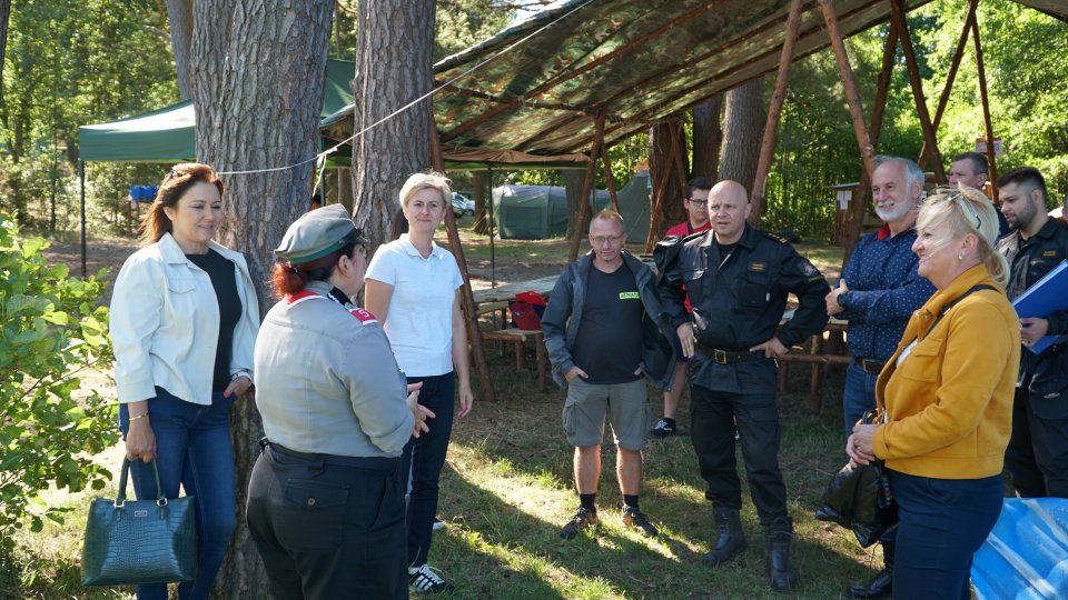 Dnia 12 lipca 2022 roku funkcjonariusze Komendy Powiatowej PSP w Strzelcach Krajeńskich, na czele z Komendantem Powiatowym st. bryg. Tomaszem Górniakiem, uczestniczyli w wyjazdowym posiedzeniu Zespołu Zarządzania Kryzysowego oraz Powiatowej Komisji Bezpieczeństwa i Porządku. Spotkanie odbyło się w Lubiewie, na terenie obozu harcerskiego pod namiotami, gdzie przebywali harcerze z Zrzeszenia Harcerskiego PIĄTA.PL z Bydgoszczy. Wizyta była poprzedzona wcześniejszymi kontrolami i szkoleniami zarówno przez przedstawicieli Państwowej Straży Pożarnej w Strzelcach Krajeńskich jak i innych służb takich jak: Komenda Powiatowa Policji w Strzelcach Krajeńskich, Państwowy Powiatowy Inspektorat Sanitarny w Drezdenku, Nadleśnictwo Smolarz czy Kuratorium Oświaty w Gorzowie Wlkp. Podczas kontroli i wizytacji funkcjonariusze Państwowej Straży Pożarnej dokonują rozpoznania terenu obozu, przeprowadzają kontrole punktów i zabezpieczeń przeciwpożarowych, sprawdzają wdrożone zasady bezpieczeństwa jak również ich znajomość przez uczestników obozu, weryfikują warunki organizacji ewakuacji obozu, przypominają obozowiczom o zasadach bezpiecznego wypoczynku podczas wakacji, zagrożeniach jakie mogą wystąpić. Sprawdzają również działanie łączności radiowej wraz z umiejętnością obsługi radiotelefonu, który jest przekazywany przez Państwową Straż Pożarną na każdy obóz harcerski pod namiotami, znajdujący się na terenie leśnym w naszym powiecie. Aktualnie na terenach leśnych pod namiotami w powiecie strzelecko-drezdeneckim odbywają się 3 obozy harcerskie, na których przebywa około 170 uczestników.