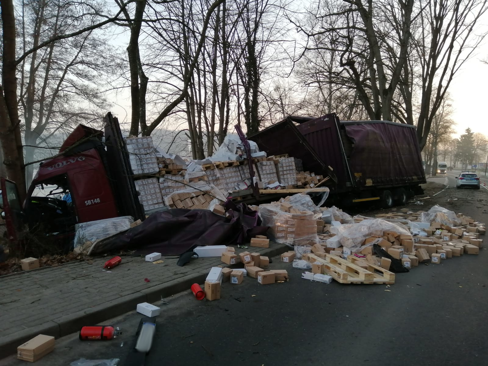 O godz. 6:46 w dniu 02.03.2021 r. do Stanowiska Kierowania Komendanta Powiatowego PSP w Strzelcach Krajeńskich wpłynęło zgłoszenie, iż na drodze DK 22 w miejscowości Długie samochód ciężarowy marki VOLVO zjechał z drogi i uderzył w drzewo. Pas jezdni w kierunku Strzelec Kraj. był zablokowany. Do zdarzenia zadysponowano dwa zastępy z JRG Strzelce Kraj. i zastęp z OSP Dobiegniew.