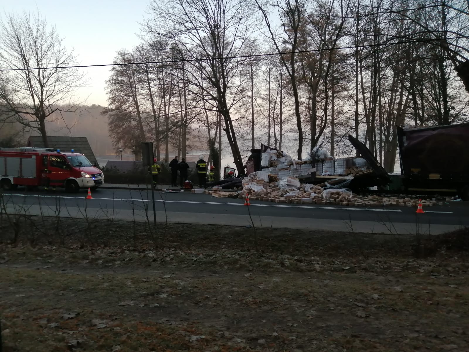 Zadania zastępów polegały na zabezpieczeniu ppoż. samochodu ciężarowego, udzieleniu kwalifikowanej pierwszej pomocy kierowcy samochody i zabezpieczeniu miejsca zdarzenia. Szczęśliwie w zdarzeniu nikt nie odniósł poważnych obrażeń. Okliczności zdarzenia wyjaśnia Policja.