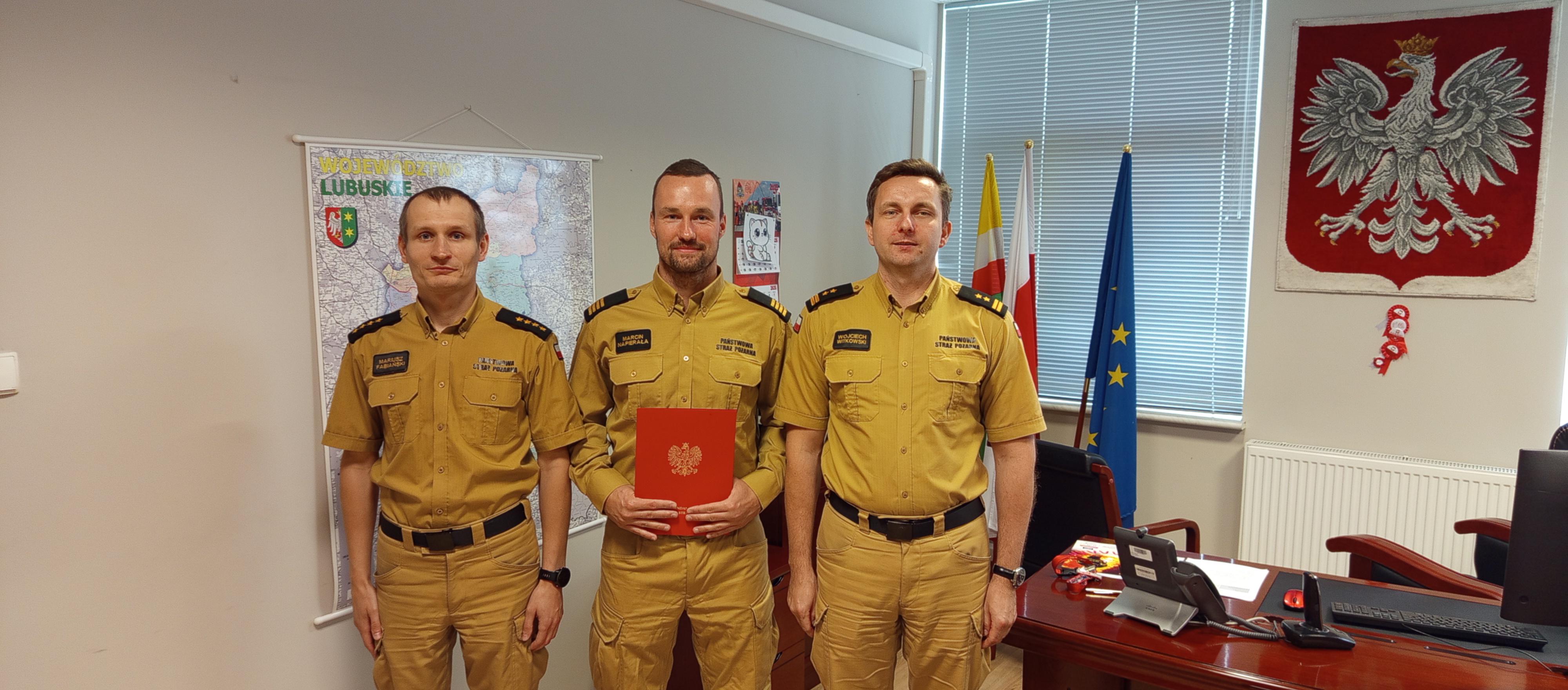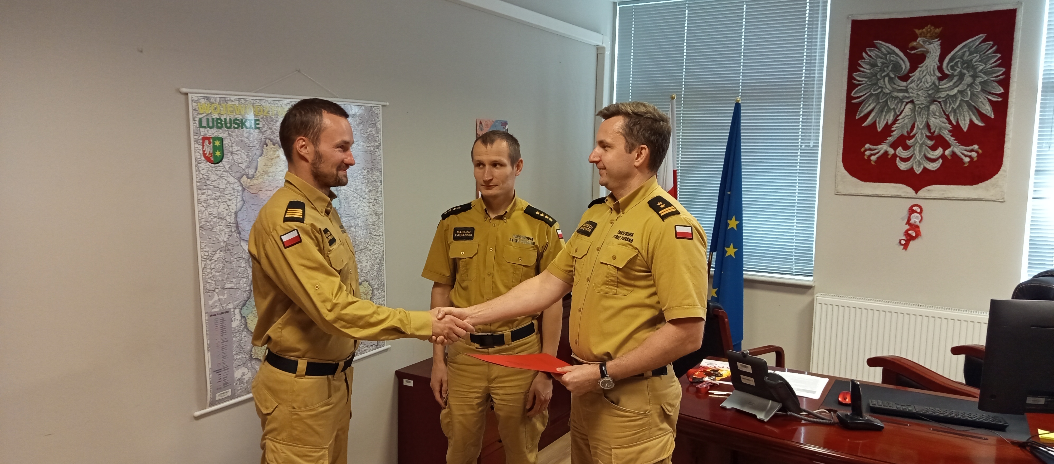 W dniu 29.09.2025 r. Komendant Powiatowy PSP w Strzelcach Krajeńskich – bryg. Wojciech Witkowski wręczył decyzję o przyznaniu nagrody za wykonywanie zadań ratownika medycznego w strukturach Państwowej Straży Pożarnej mł. ogn. Marcinowi Napierale. Wyróżniony funkcjonariusz otrzymał nagrodę przyznaną z inicjatywy nadbryg. Janusza Drozdy - Lubuskiego Komendanta Wojewódzkiego PSP ze środków finansowych, zwiększających fundusz nagród przyznanych decyzją Wojewody Lubuskiego.