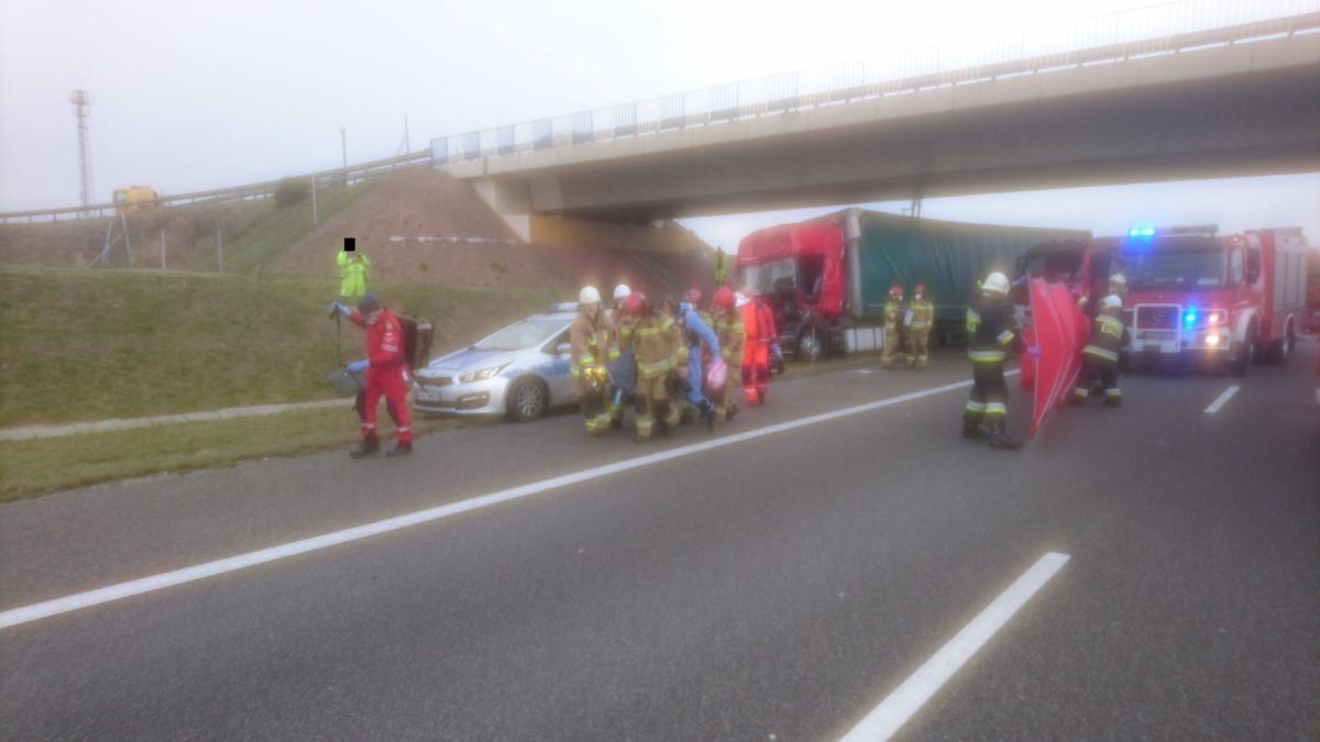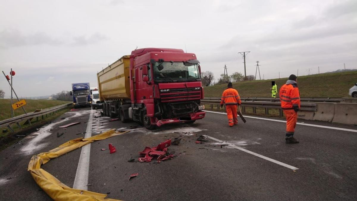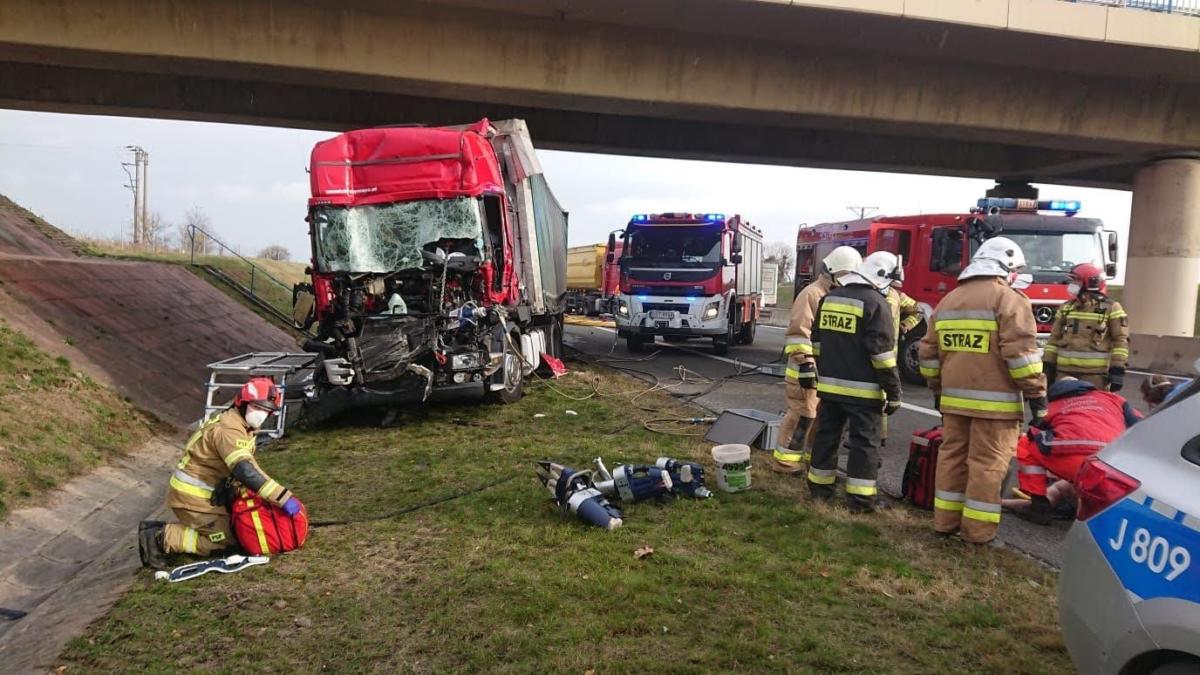 16 listopada 2020 roku przed godziną 13 dyżurny Stanowiska Kierowania Komendanta Powiatowego Państwowej Straży Pożarnej w Strzelcach Opolskich otrzymał zgłoszenie o zderzeniu trzech samochodów ciężarowych na autostradzie A4 (271,8km) w kierunku na Wrocław w powiecie strzeleckim.Dyżurny na miejsce zdarzenia zadysponował zastępy z JRG w Strzelcach Opolskich oraz zastępy z Ochotniczej Straży Pożarnej w Zalesiu Śląskim i Olszowej. Po przybyciu na miejsce zdarzenia strażacy potwierdzili zdarzenie trzech pojazdów ciężarowych, w których podróżowało trzech kierowców. Jeden z nich był zakleszczony w kabinie samochodu ciężarowego, a pozostali znajdują się poza samochodami i nie uskarżają się na żadne dolegliwości. Działania strażaków polegały na:
