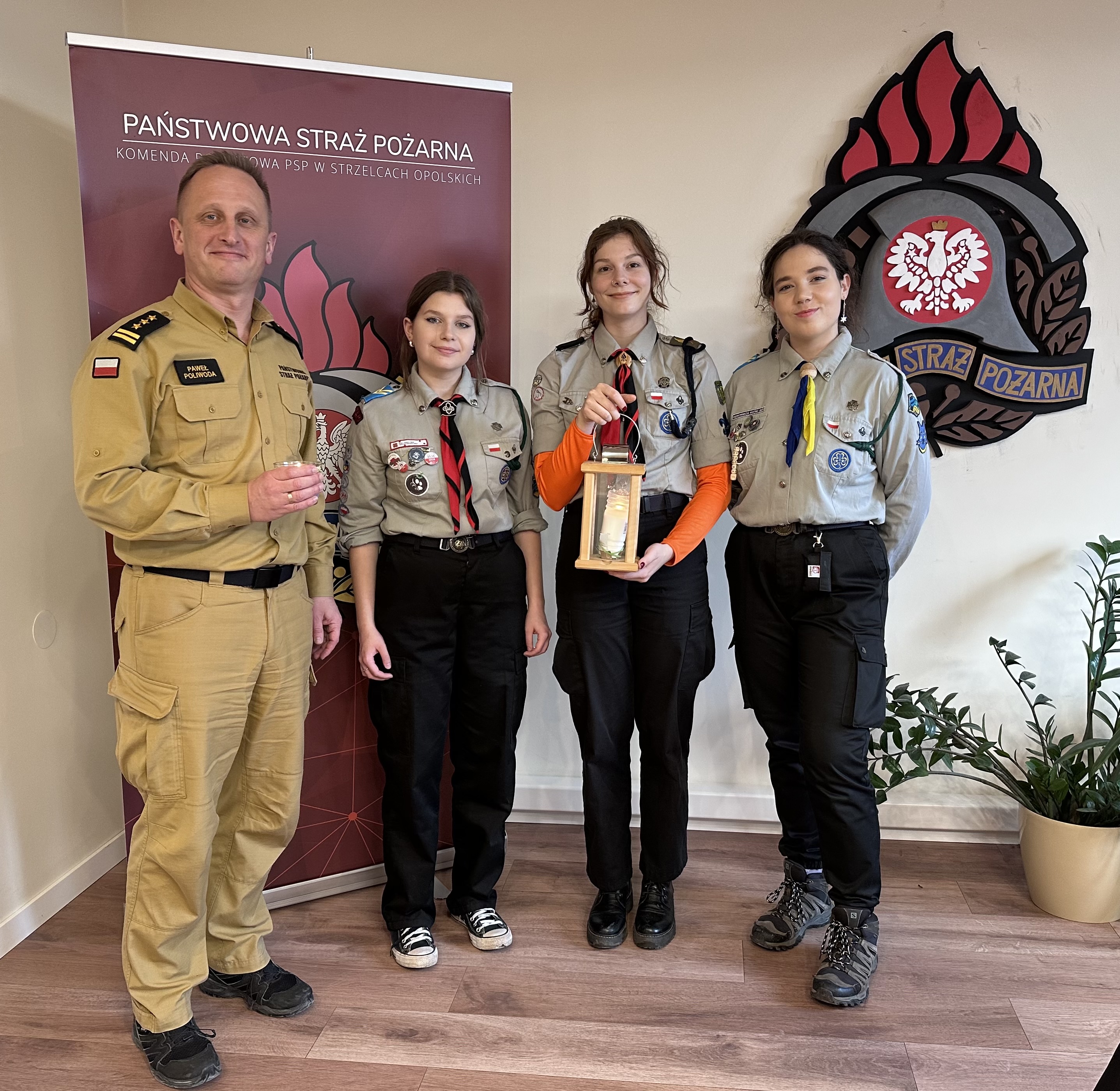 17 grudnia 2024 roku harcerze ze Strzelec Opolskich przekazali Betlejemskie Światełko Pokoju na ręce st. bryg. Pawła Poliwody Komendanata Powiatowego Państwowej Straży Pożarnej w Strzelcach Opolskich.