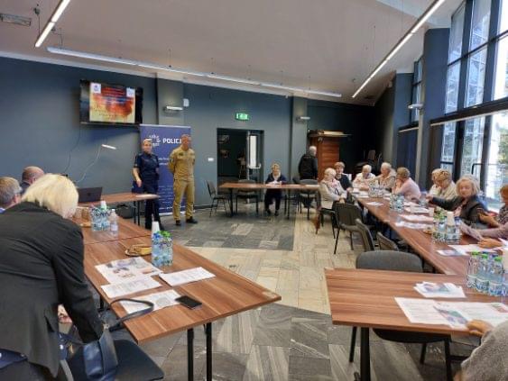 Zagadnienia dotyczące podstępnych metod działania oszustów i jak się przed nimi uchronić omówiła mł. asp. Dorota Janać i mł. asp. Joanna Opas z Komendy Powiatowej Policji w Strzelcach Opolskich. Zagadnienia dotyczące praw konsumenta i sposoby dochodzenia roszczeń przedstawiła Powiatowa Rzecznik Praw Konsumenta Małgorzata Płaszczyk- Waligórska. Prezes Zarządu Banku Społecznego w Zawadzkiem Joachim Greger przedstawił zagadnienia dotyczące oszustwa i podejmowania gotówki.
