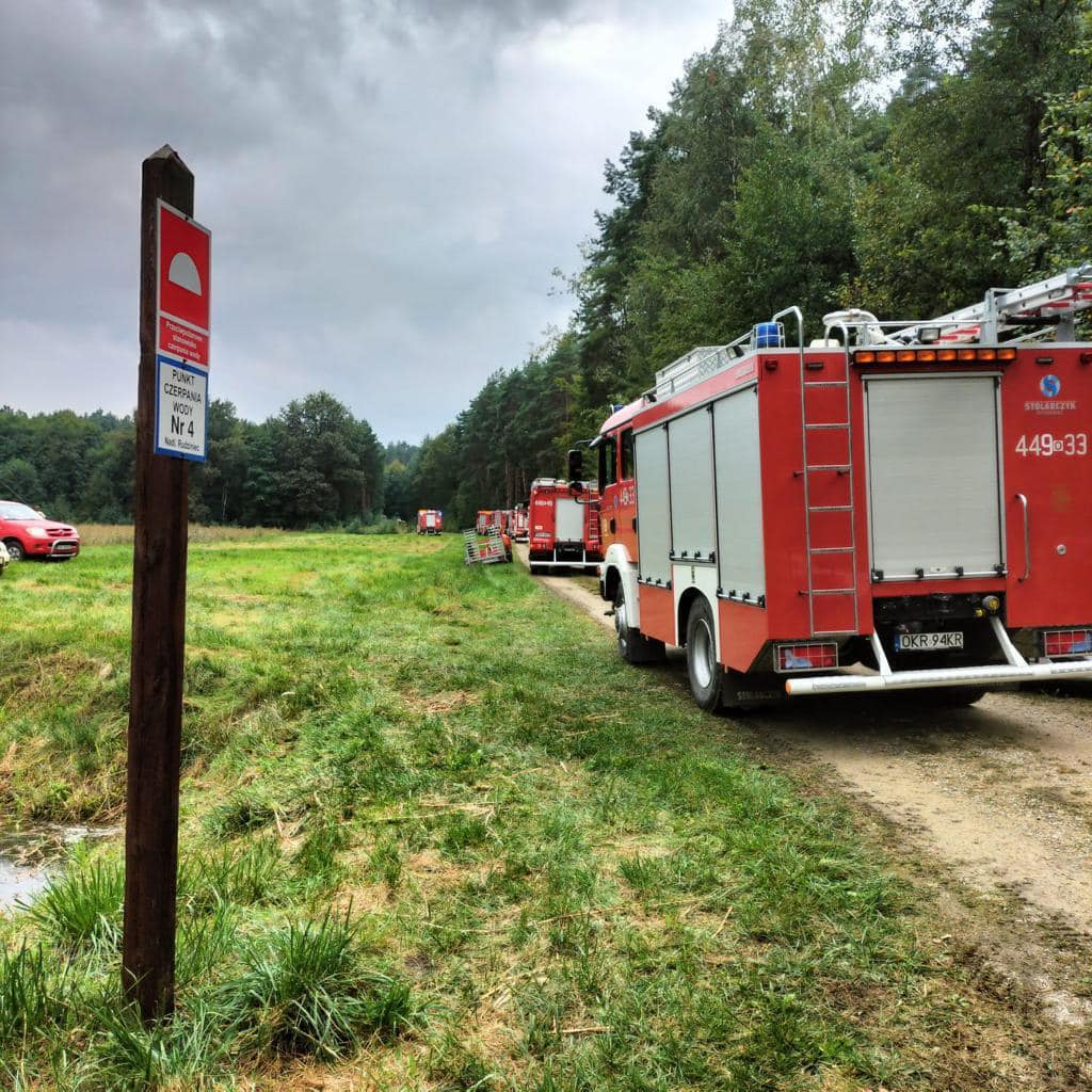 W związku z rozwojem pożaru oraz niewystarczającymi siłami z terenu powiatu strzeleckiego do działań skierowano kompanie gaśnicze z powiatu opolskiego, kędzierzyńsko-kozielskiego i krapkowickiego. Zadaniem zadysponowanych zastępów była budowa punktu czerpania wody na zbiorniku wodnym „Gajdowe” i leśnym punkcie czerpania wody oraz dostarczenie wody na odległość 2500 metrów oraz przygotowanie obrony z wydatkiem 3200 litrów wody na minutę.