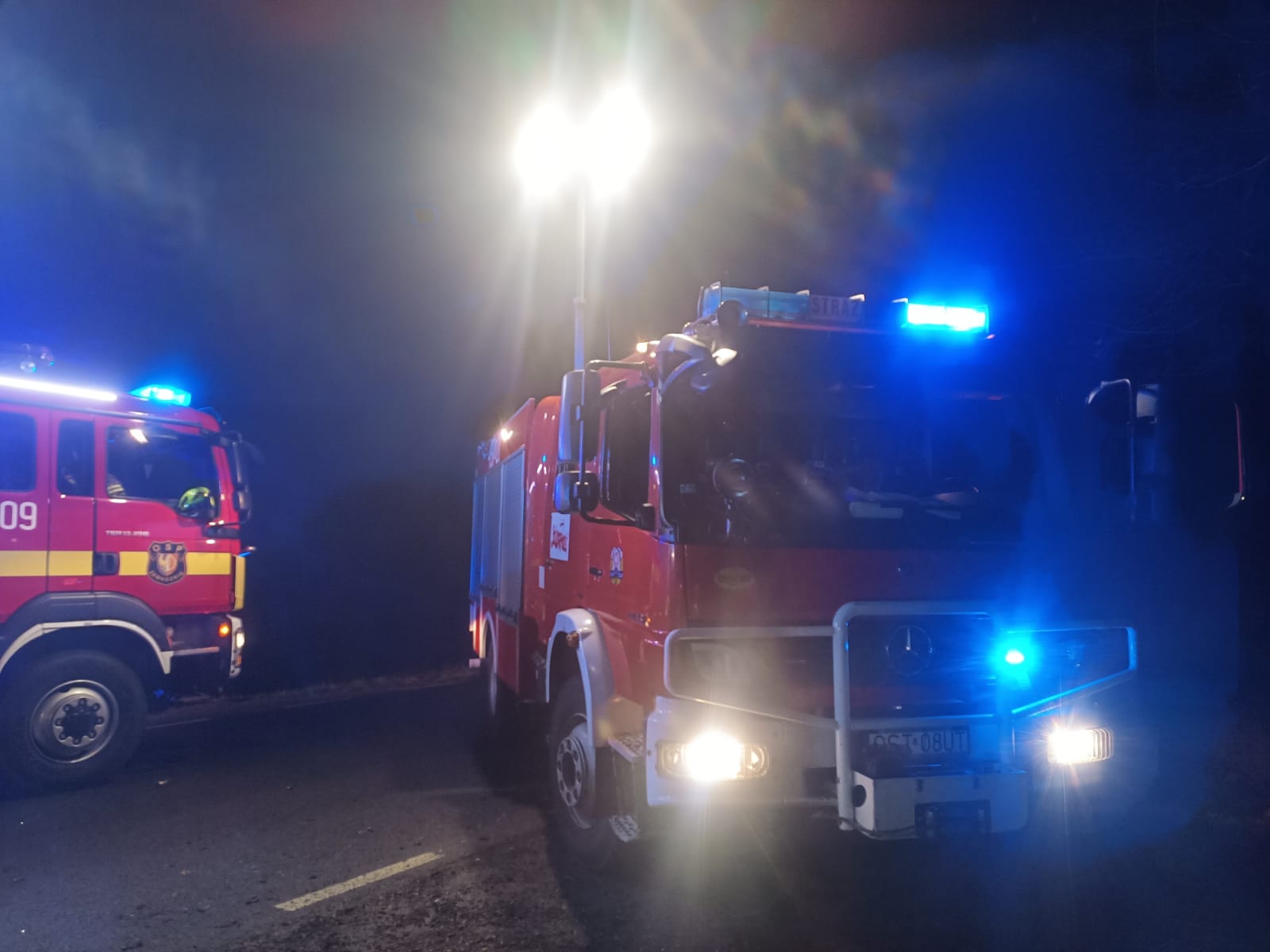 Działania strażaków polegały na oświetleniu terenu działań ratowniczych, wykonaniu dostępu do poszkodowanego przy użyciu narzędzi hydraulicznych oraz ewakuacji poszkodowanego z pojazdu.