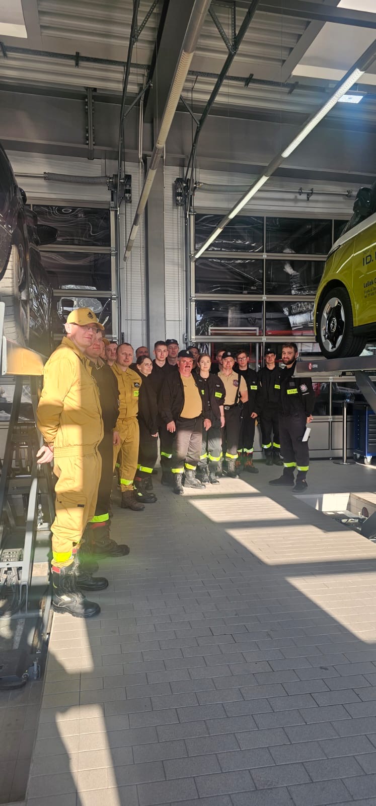 Kolejny raz dzięki uprzejmości Grupy Lellek strażacy zapoznali się z elektrycznymi pojazdami marki Volkswagen i Audi. Przedstawiciel autosalonu zaprezentował systemy bezpieczeństwa pojazdów oraz sposoby dezaktywacji samochodu mających na celu bezpieczne prowadzenie działań ratowniczych. Tego typu szkolenia są niezbędne w obliczu rosnącej liczby pojazdów elektrycznych na drogach, co stawia nowe wyzwania związane z bezpieczeństwem i skutecznością działań ratowniczych.