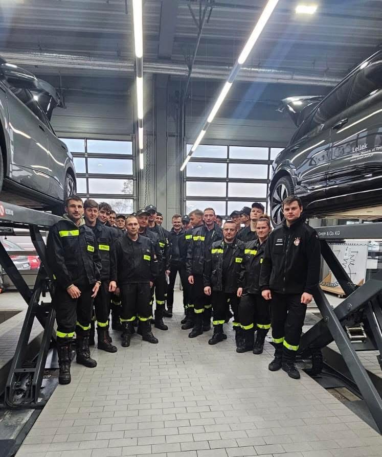 Celem szkolenia było zapoznanie strażaków z obsługą pojazdów o napędzie elektrycznym podczas sytuacji awaryjnych i zdarzeń drogowych oraz omówienie zagrożeń związanych z ich konstrukcją. Kolejny raz dzięki uprzejmości Grupy Lellek strażacy zapoznali się z elektrycznymi pojazdami marki Volkswagen i Audi. Przedstawiciel autosalonu zaprezentował systemy bezpieczeństwa pojazdów oraz sposoby dezaktywacji samochodu celem bezpiecznego prowadzenia działań ratowniczych. Tego typu szkolenia są niezbędne w obliczu rosnącej liczby pojazdów elektrycznych na drogach, co stawia nowe wyzwania związane z bezpieczeństwem i skutecznością działań ratowniczych.
