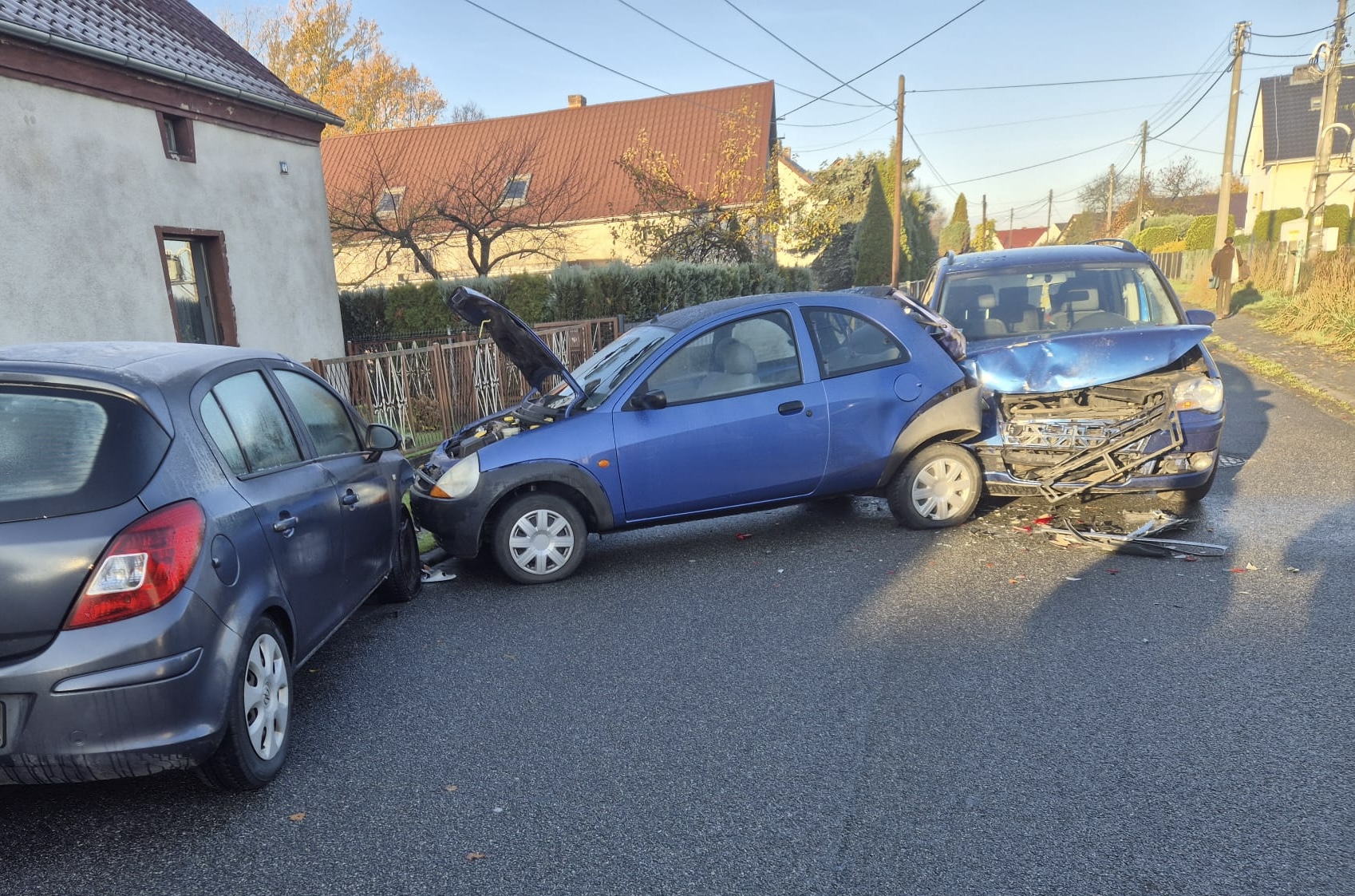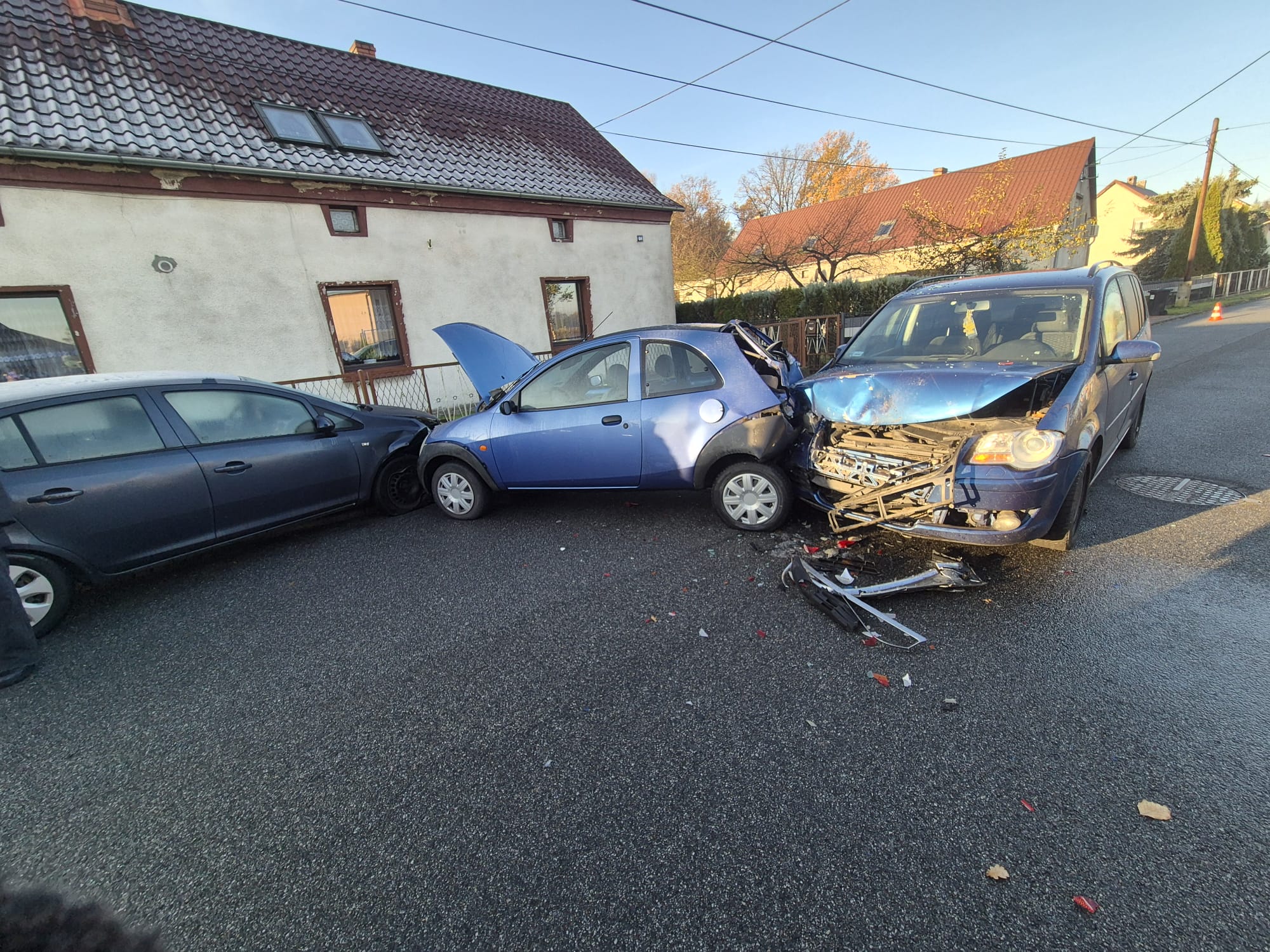 Kolizja trzech samochodów osobowych