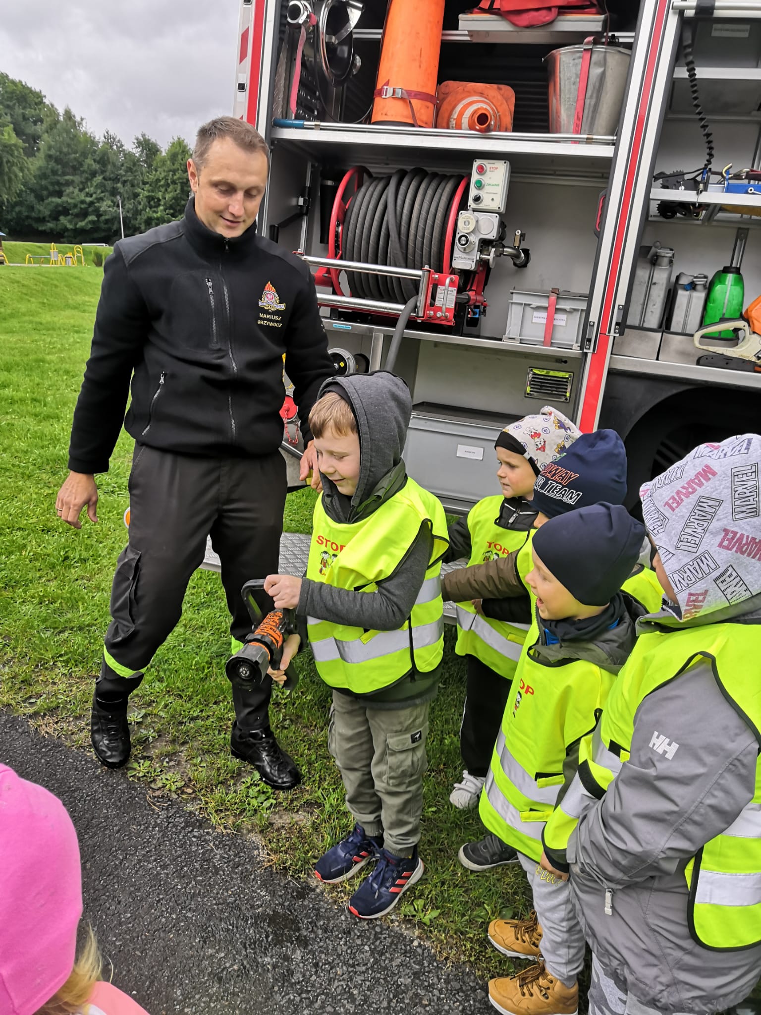 20 września 2021 r. Nasi strażacy wspólnie z funkcjonariuszami Policji odwiedzili dzieci z przedszkola w Sieroniowicach. W trakcie spotkania strażacy i policjanci zaprezentowali pojazdy i sprzęt którym na co dzień udzielają pomocy w trakcie zdarzeń