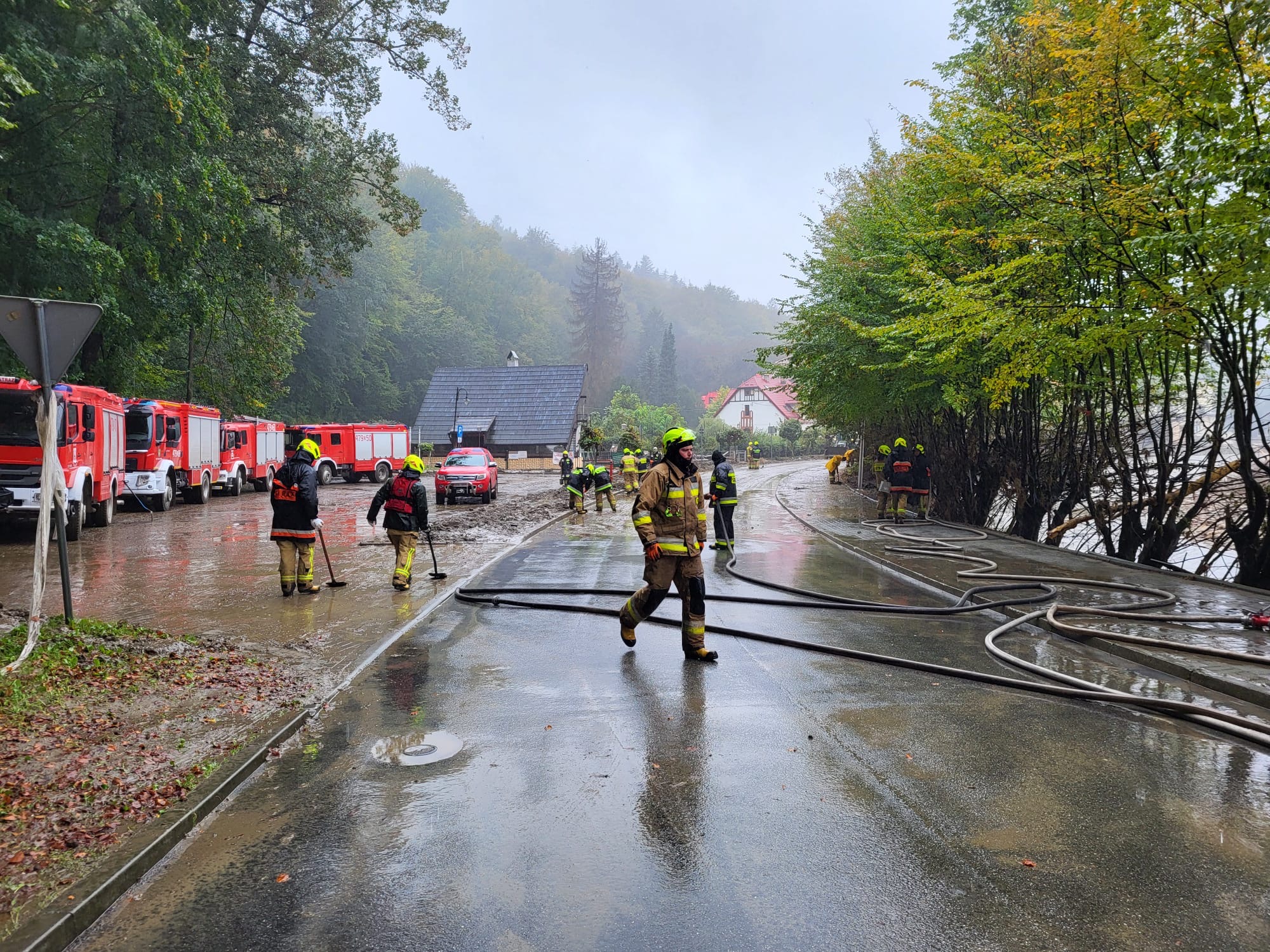 Pomoc strażaków z powiatu strzeleckiego i oleskiego w działaniach powodziowych na terenie Gminy Głuchołazy