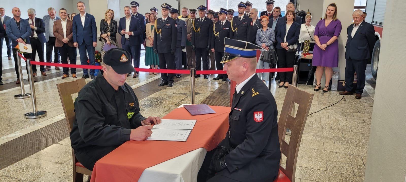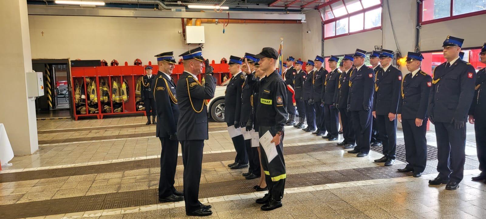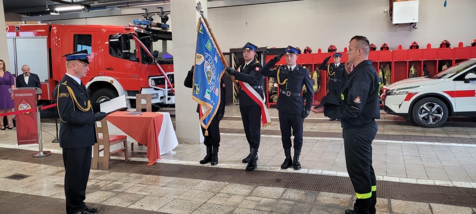 Dzień strażaka był również okazją do złożenia ślubowania nowo przyjętego strażaka Mateusza Mróz. Ślubowanie przyjął Komendant Powiatowy PSP st. bryg. Paweł Poliwoda w obecności zaproszonych gości, funkcjonariuszy i pracowników cywilnych. W uroczystości brali udział najbliżsi ślubującego strażaka. Ślubowanie to bardzo uroczysty moment w życiu zawodowym funkcjonariusza i stanowi symbol pełnego włączenia do służby. Nowemu strażakowi gratulujemy, życzymy powodzenia w służbie i życiu prywatnym.