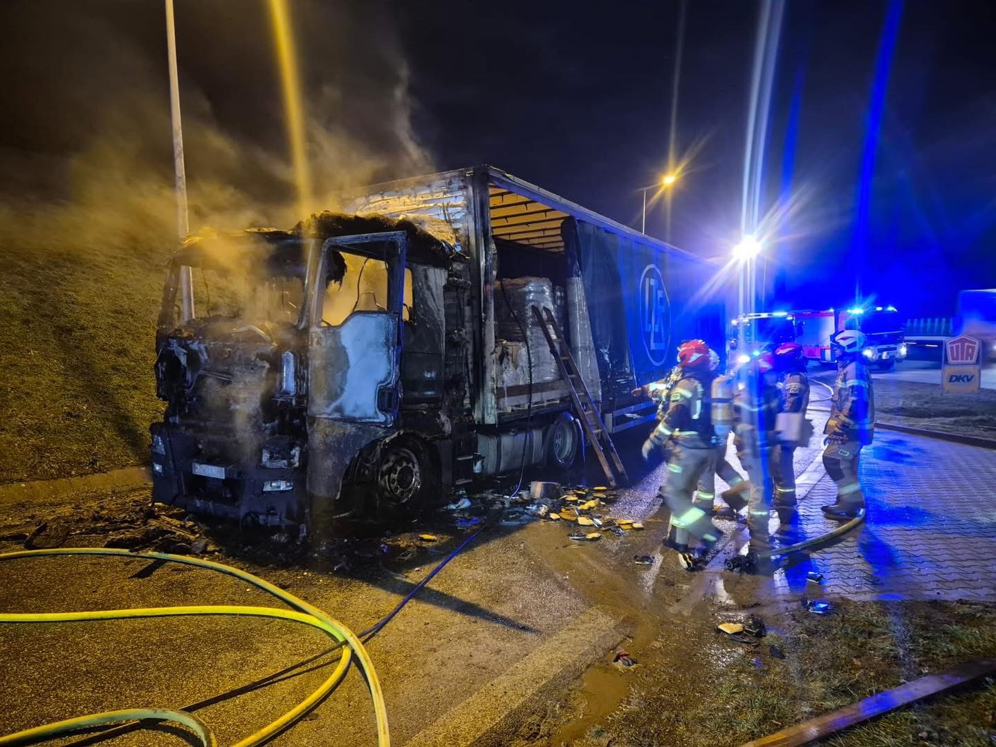 🔥 Dzięki szybkiej i zdecydowanej akcji pożar został opanowany, a ogień nie przeniósł się na naczepę ani pobliską infrastrukturę.