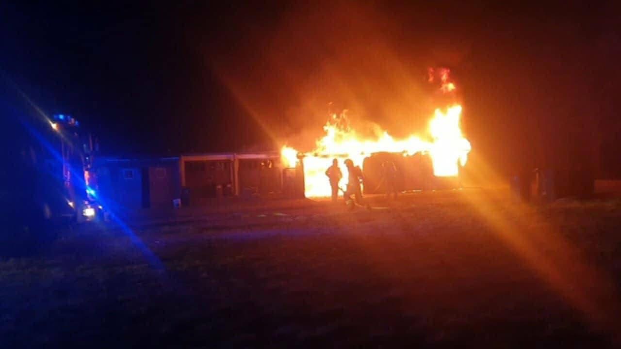 Pożar kompleksu garaży w Izbicku