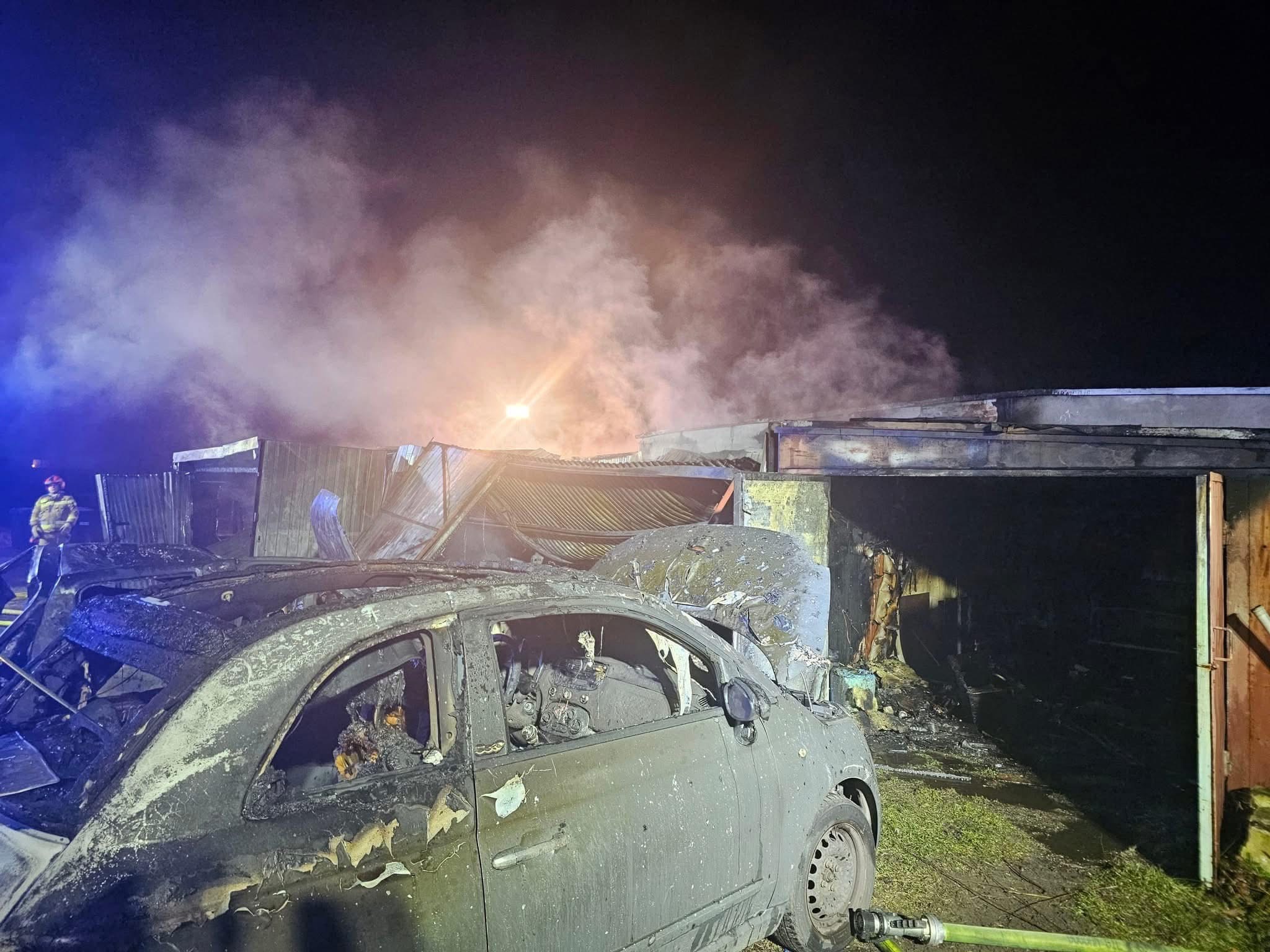 Spaleniu uległo pięć garaży pojedynczych oraz jeden garaż podwójny, w których spaleniu uległy dwa samochody, traktorek typu kosiarka oraz ich wyposażenie.