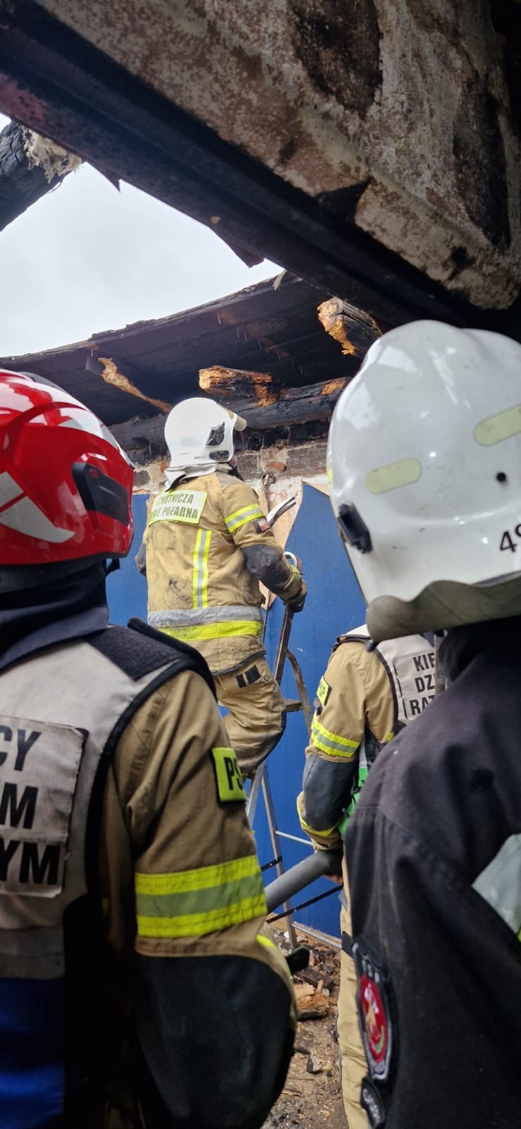 - rozbiórce nadpalonych elementów konstrukcji dachu,