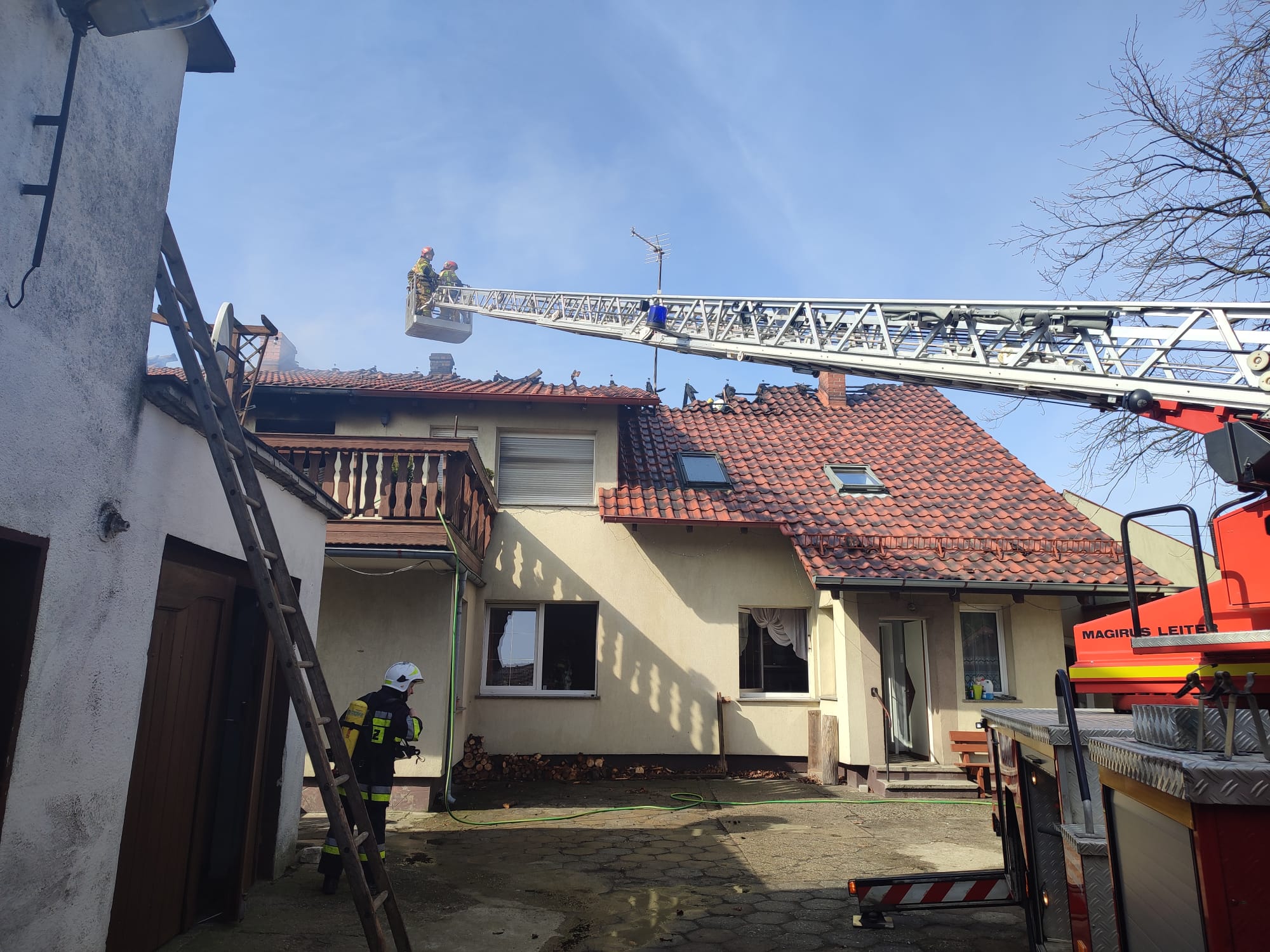 - pali się poddasze budynku mieszkalnego,