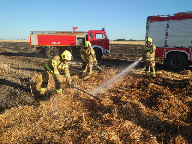 6. Zastęp OSP Strzelce Opolskie oraz zastęp JRG Strzelce Opolskie prowadziły działania gaśnicze podczas pożaru słomy na polu w miejscowości Strzelce Opolskie ul. Dolińska.