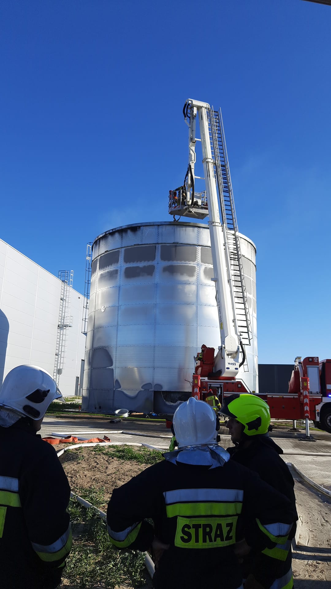 5. Zastępy OSP Olszowa, OSP Ujazd , OSP Zimna Wódka oraz JRG Strzelce Opolskie prowadziły działania gaśnicze warstwy izolujacej i uszczelniajacej w zbiorniku przeciwpożarowym na strefie ekonomicznej w miejscowości Zimna Wódka.