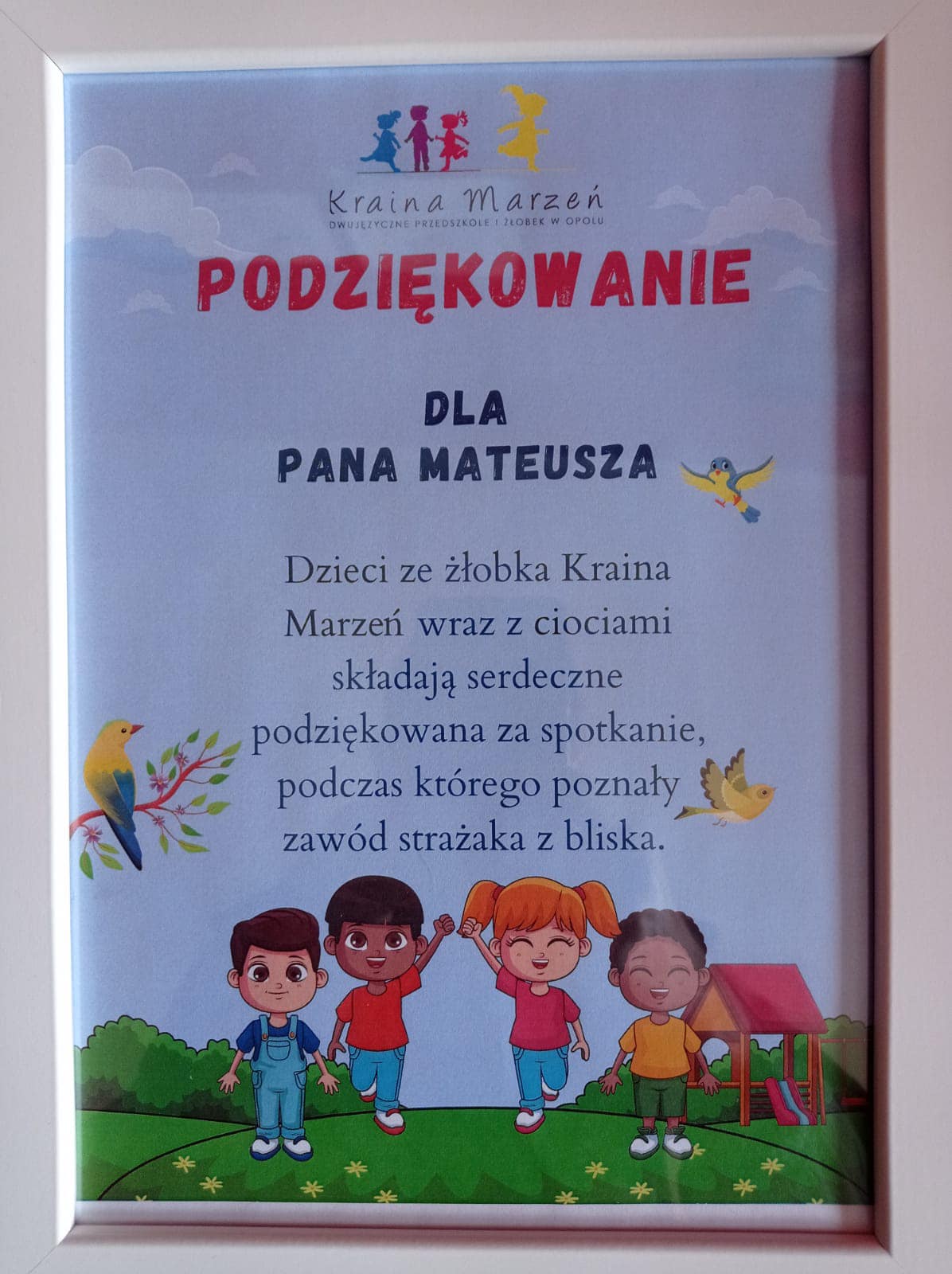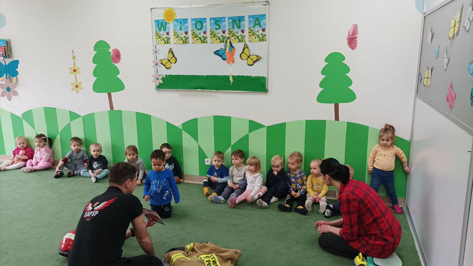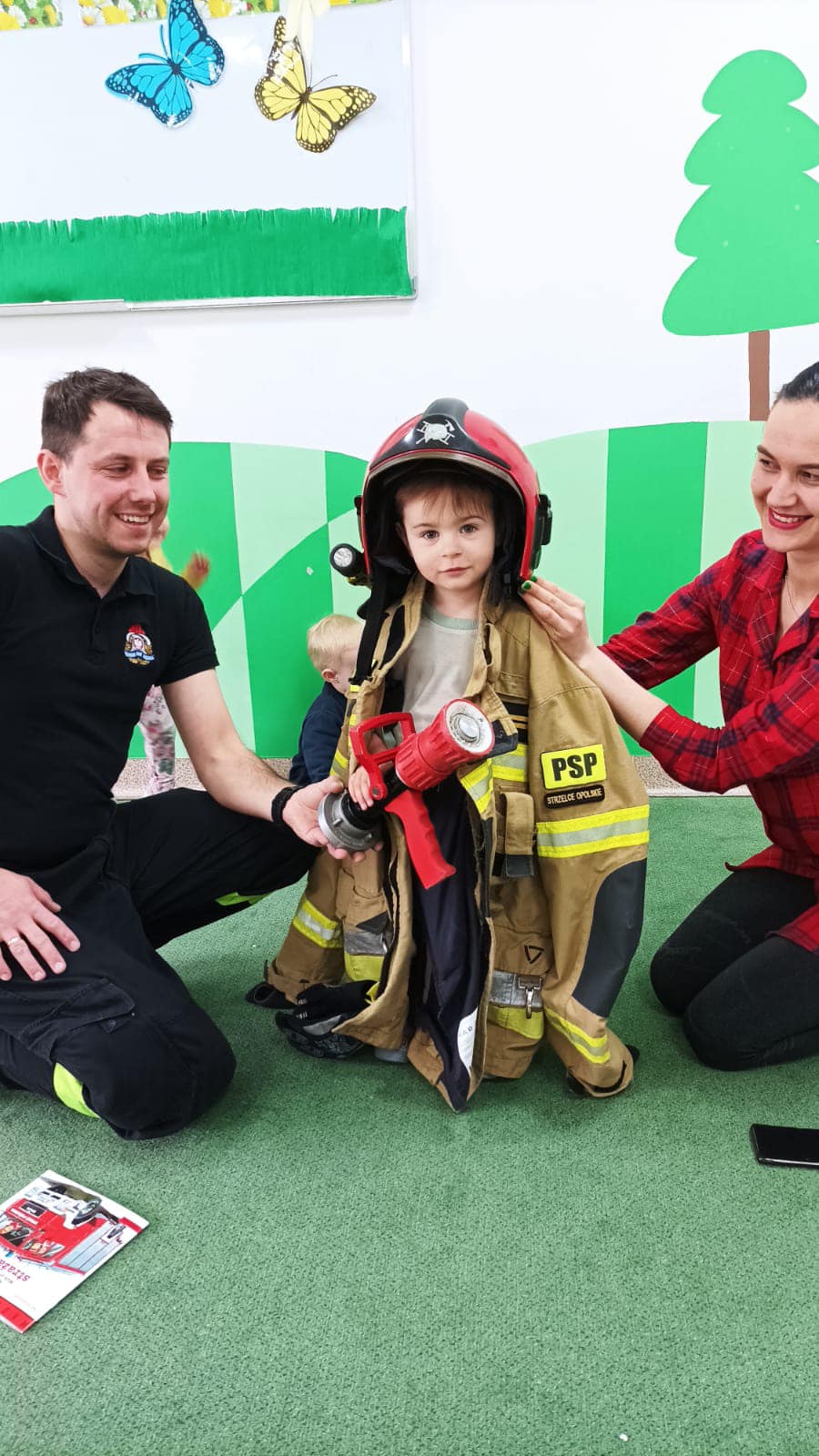 20 kwietnia nasz strażak sekc. Mateusz Kotygin odwiedził podopiecznych Niepublicznego Żłobka „Kraina Marzeń” w Opolu. W trakcie spotkania Mateusz omówił maluszkom zakres pracy strażaka, zaprezentował ubiór i podstawowy sprzęt. Ponadto przedstawił zasady zgłaszania zdarzeń oraz omówił klasyfikację zdarzeń w jakich strażacy biorą udział ratując ludzkie życie, zdrowie i mienie.