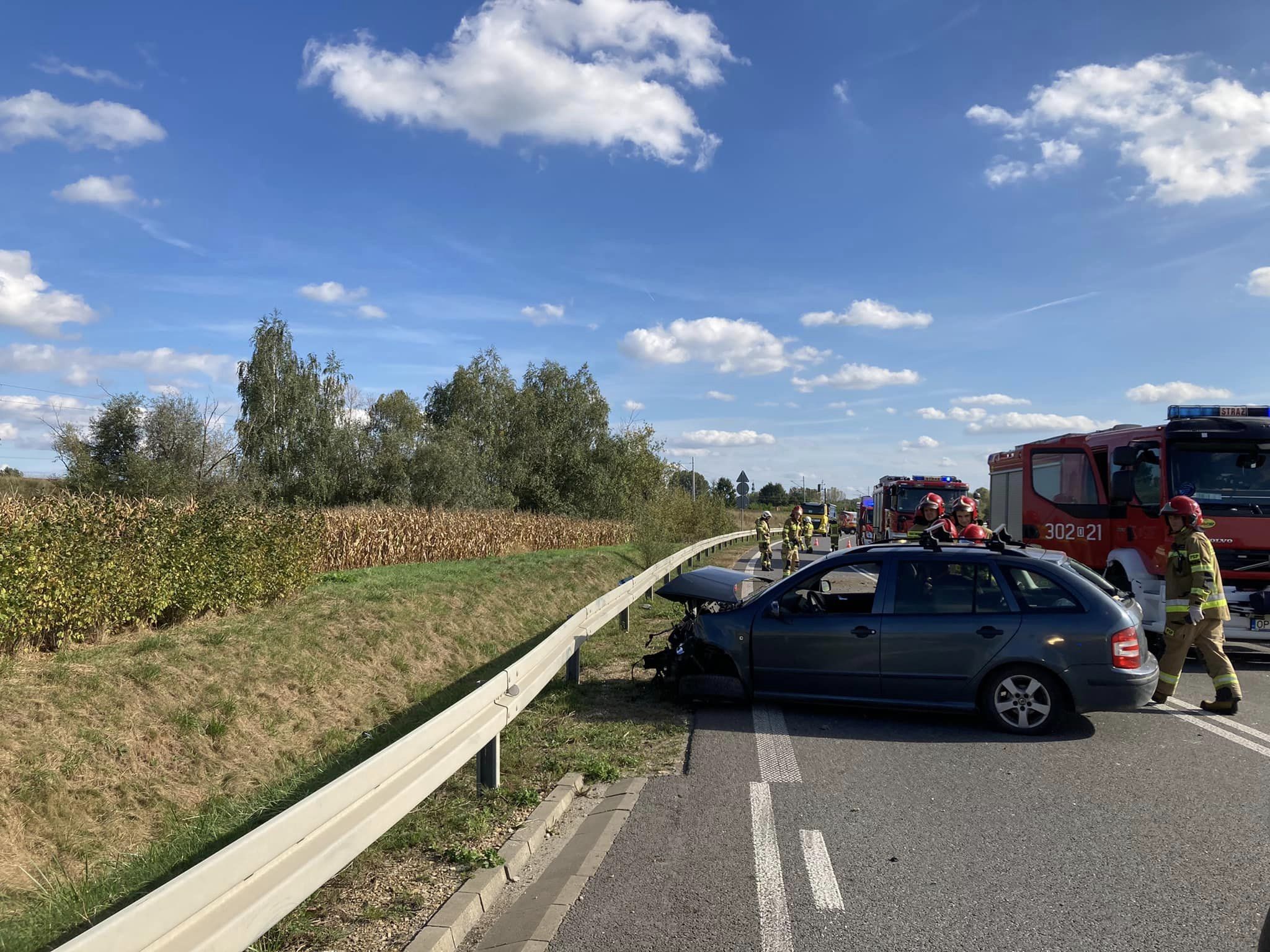 2 października po godzinie 14:00 na obwodnicy Czarnowąs w kierunku na Namysłów miał miejsce wypadek, podczas którego kierowca uderzył w bariery. Nasz funkcjonariusz sekcyjny Aleksander Warzecha w czasie wolnym od służby zauważył to zdarzenie, zabezpieczył miejsce wypadku i udzielił pierwszej pomocy poszkodowanemu kierowcy do czasu przybycia karetki. Polecił również świadkom zdarzenia wyciągnąć kluczyk ze stacyjki i odłączyć akumulator w pojeździe. Olek jest również ratownikiem medycznym. Poszkodowany został zabrany do szpitala przez przybyły ZRM.