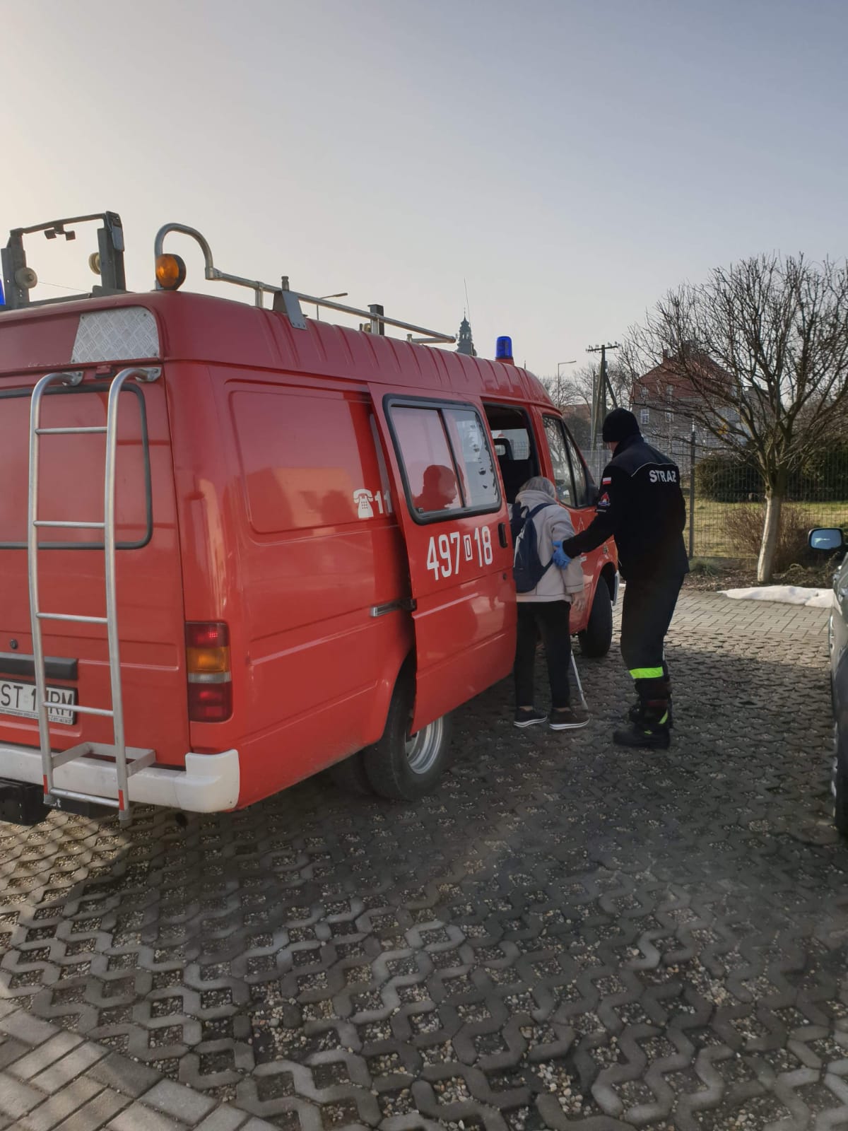 25 lutego 2021 r. strażacy z Ochotniczej Straży Pożarnej w Rozmierzy udzielali pomocy w dotarciu do punktu szczepień na terenie powiatu strzeleckiego.