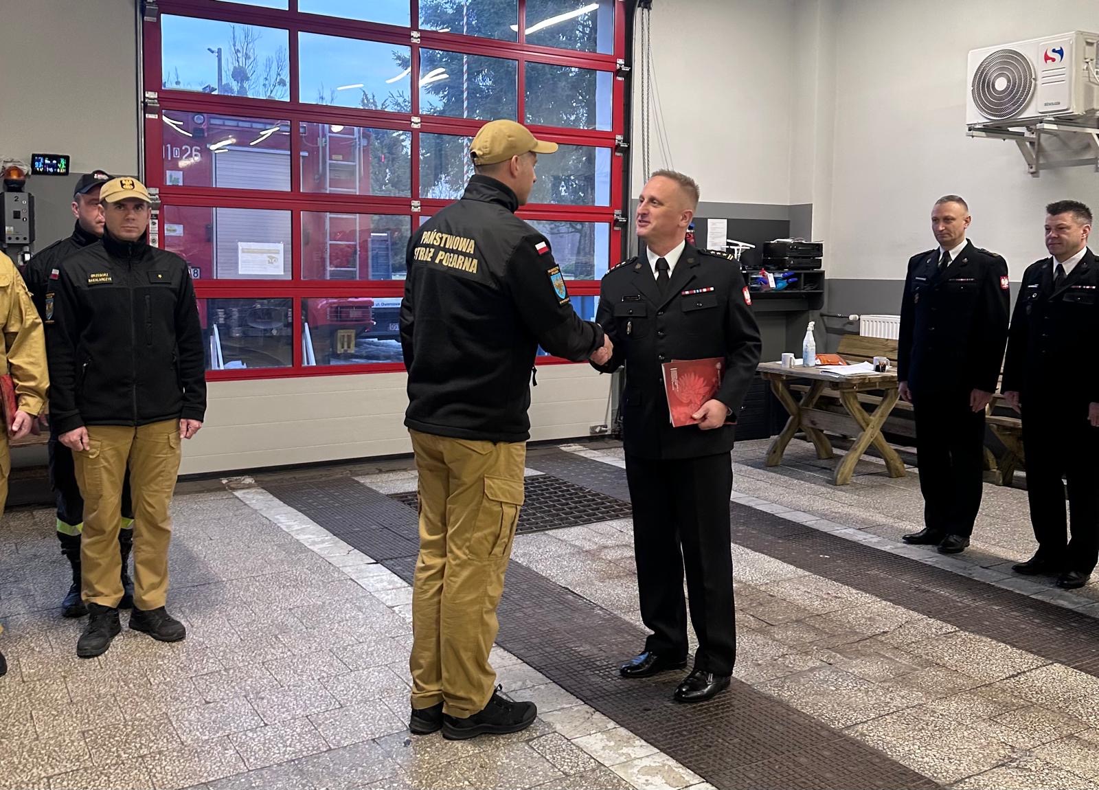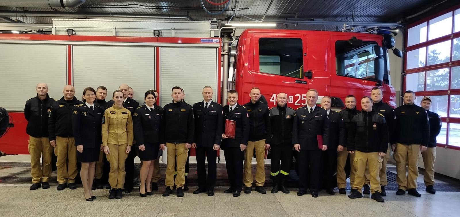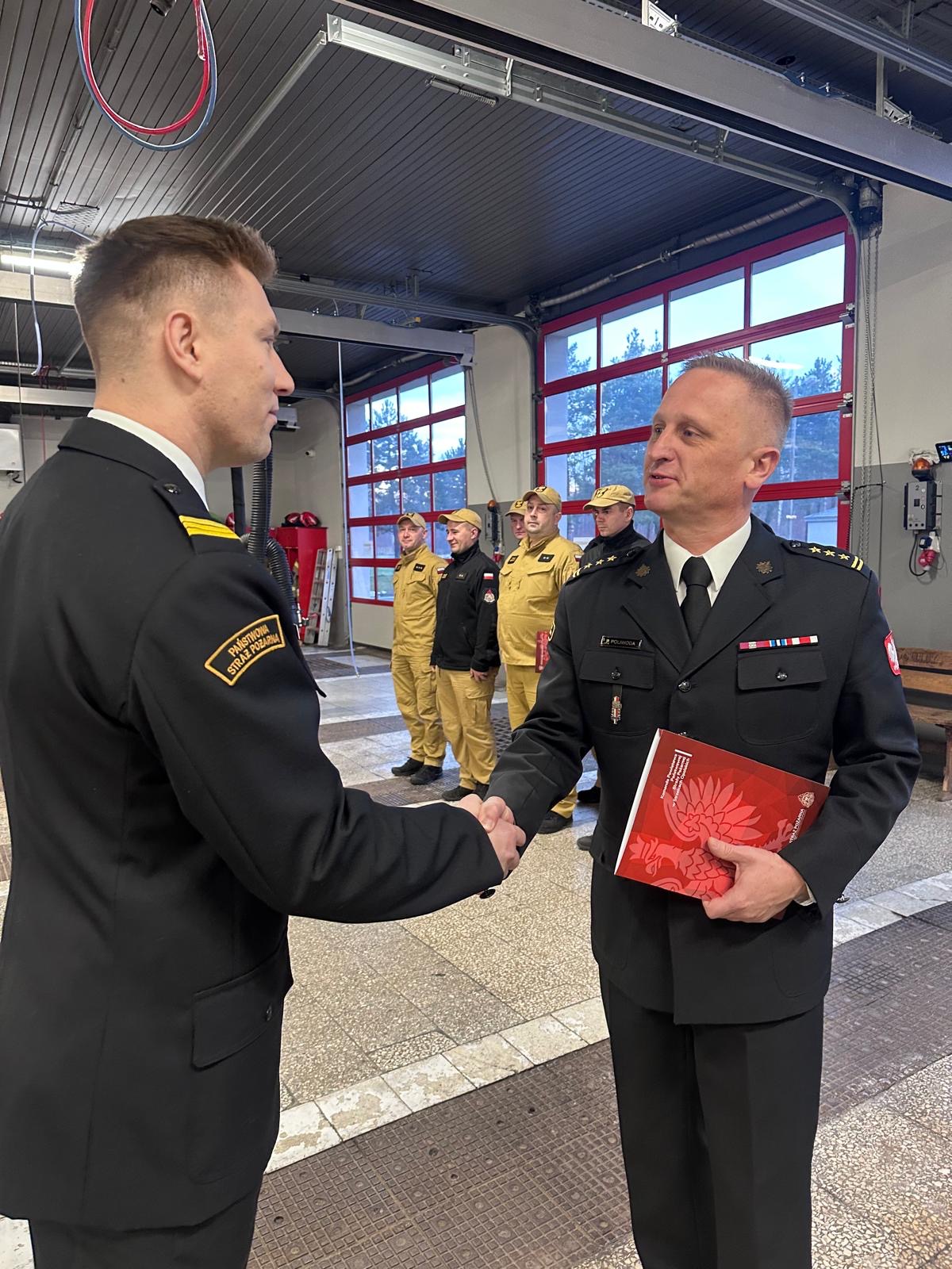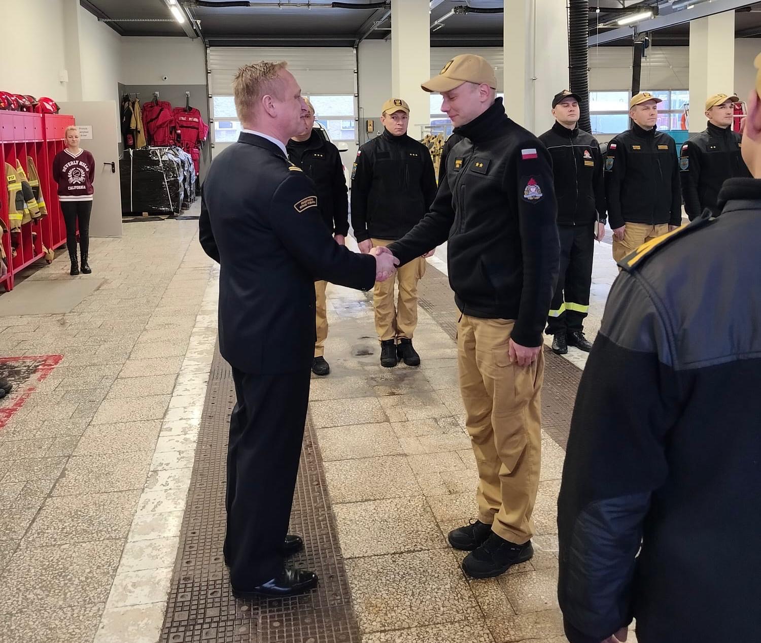 27 listopada i 4 grudnia 2025 roku w trakcie zmiany służby Komendant Powiatowy Państwowej Straży Pożarnej w Strzelcach Opolskich st. bryg. Paweł Poliwoda wręczył awanse na wyższe stopnie służbowe. Awanse zostały nadane z okazji Narodowego Święta Niepodległości. Awanse na wyższe stopnie służbowe otrzymali: asp. Tomasz Morawski awansowany na stopień starszego aspiranta, asp. Rafał Hendel awansowany na stopień starszego aspiranta, mł. ogn. Piotr Pencko awans na stopień ogniomistrza, sekc. Mateusz Kotygin awansowany na stopień starszego sekcyjnego, sekc. Nikolas Szpecht awansowany na stopień starszego sekcyjnego, sekc. Peter Sobiech awansowany na stopień starszego sekcyjnego. Nagrodą finansową zostali wyróżnieni mł. bryg. Mateusz Nieświec, asp. sztab. Tomasz Wdowik i st. asp. Grzegorz Duda, którzy zdobyli brązowy medal podczas 41 Drużynowych Mistrzostw Polski Strażaków w Tenisie Stołowym. Awansowanym i wyróżnionym gratulujemy i życzymy dalszych sukcesów oraz satysfakcji z wykonywanych obowiązków służbowych. Zdjęcia: Pan Małgorzata Buhl