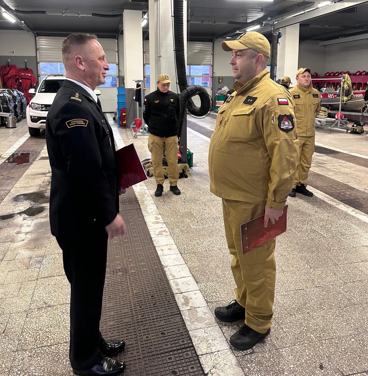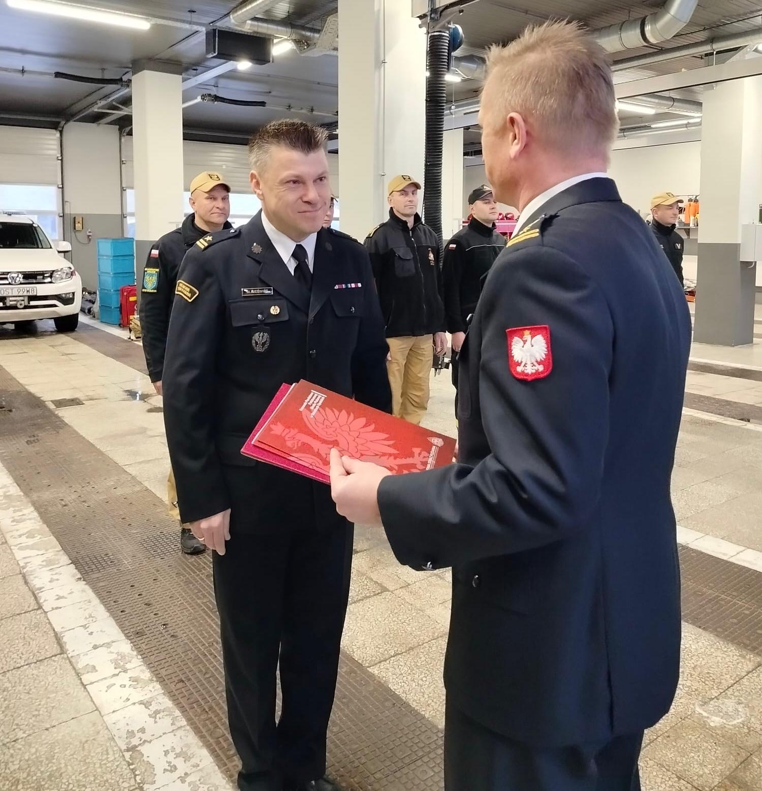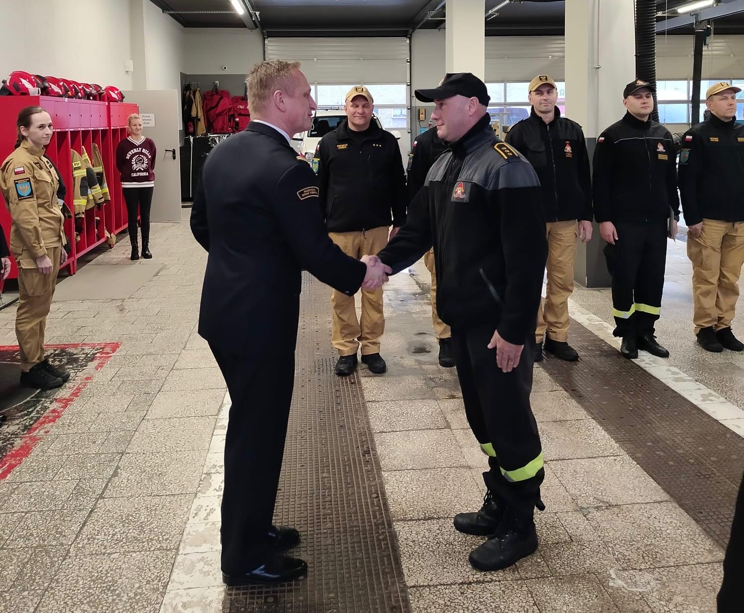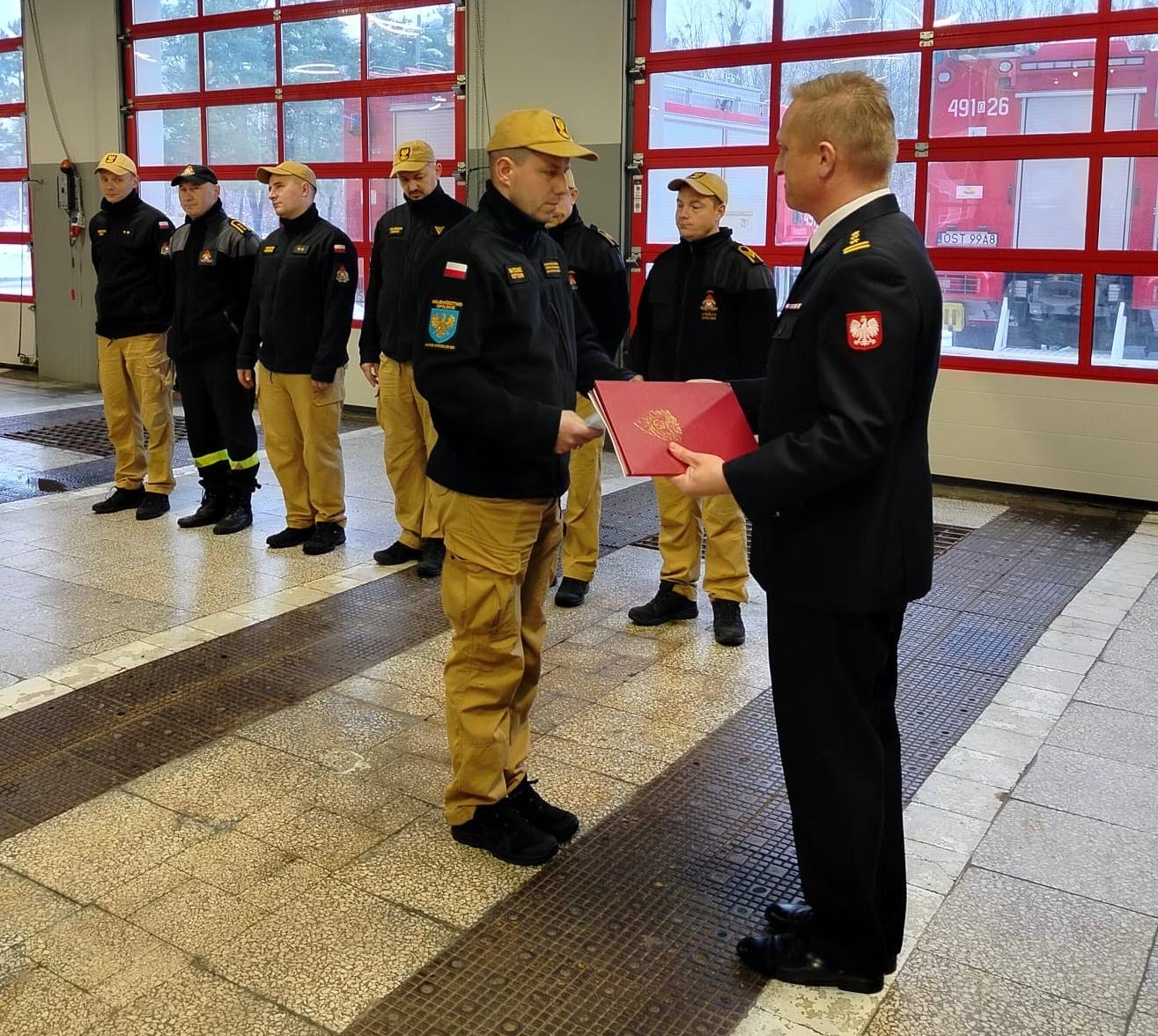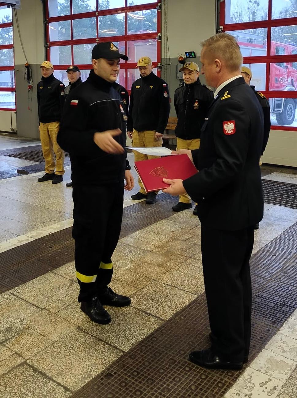 27 listopada i 4 grudnia 2025 roku w trakcie zmiany służby Komendant Powiatowy Państwowej Straży Pożarnej w Strzelcach Opolskich st. bryg. Paweł Poliwoda wręczył awanse na wyższe stopnie służbowe. Awanse zostały nadane z okazji Narodowego Święta Niepodległości. Awanse na wyższe stopnie służbowe otrzymali: asp. Tomasz Morawski awansowany na stopień starszego aspiranta, asp. Rafał Hendel awansowany na stopień starszego aspiranta, mł. ogn. Piotr Pencko awans na stopień ogniomistrza, sekc. Mateusz Kotygin awansowany na stopień starszego sekcyjnego, sekc. Nikolas Szpecht awansowany na stopień starszego sekcyjnego, sekc. Peter Sobiech awansowany na stopień starszego sekcyjnego. Nagrodą finansową zostali wyróżnieni mł. bryg. Mateusz Nieświec, asp. sztab. Tomasz Wdowik i st. asp. Grzegorz Duda, którzy zdobyli brązowy medal podczas 41 Drużynowych Mistrzostw Polski Strażaków w Tenisie Stołowym. Awansowanym i wyróżnionym gratulujemy i życzymy dalszych sukcesów oraz satysfakcji z wykonywanych obowiązków służbowych. Zdjęcia: Pan Małgorzata Buhl