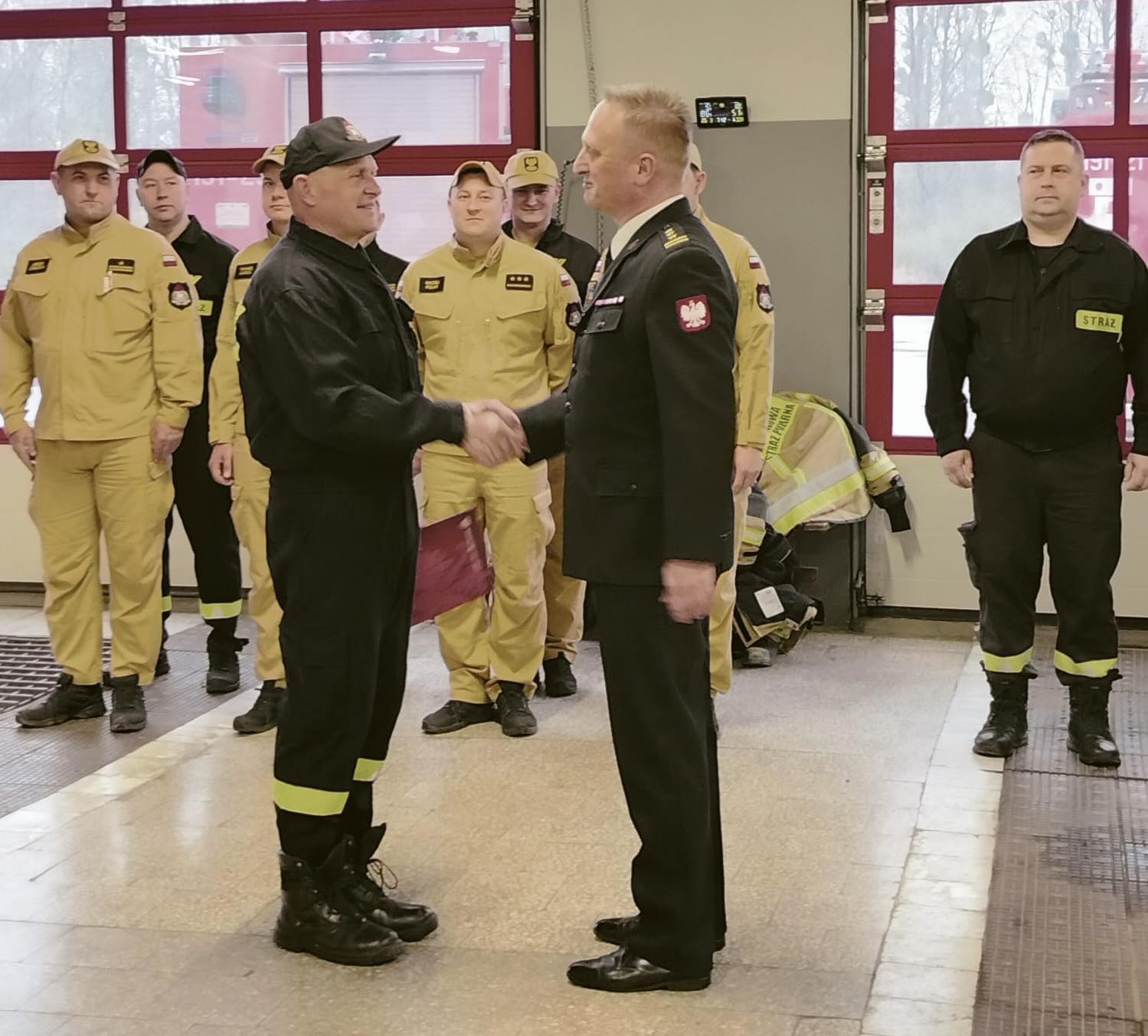 W uroczystej zmianie służby uczestniczyli: st. bryg. Paweł Poliwoda Komendant Powiatowy Państwowej Straży Pożarnej w Strzelcach Opolskich, funkcjonariusze i pracownicy naszej komendy, emeryci oraz najbliżsi Józka. W trakcie uroczystości Komendant Powiatowy, Dowódca Jednostki Ratowniczo- Gaśniczej oraz dowódca zmiany w wielu serdecznych słowach podziękowali Józkowi za ogromny wkład pracy w pełnioną służbę.