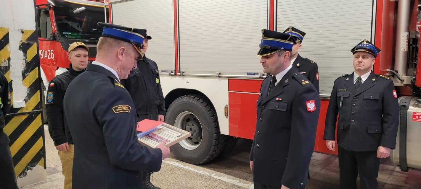 Sławek w swojej mowie podziękował wszystkim za wspólną służbę pełnioną w przyjezdnej atmosferze, a w dniu 24 lutego 2024 r. zawiesił pamiątkową tabliczkę zaznaczając tym samym swój ogromny wkład w funkcjonowanie naszej komendy.