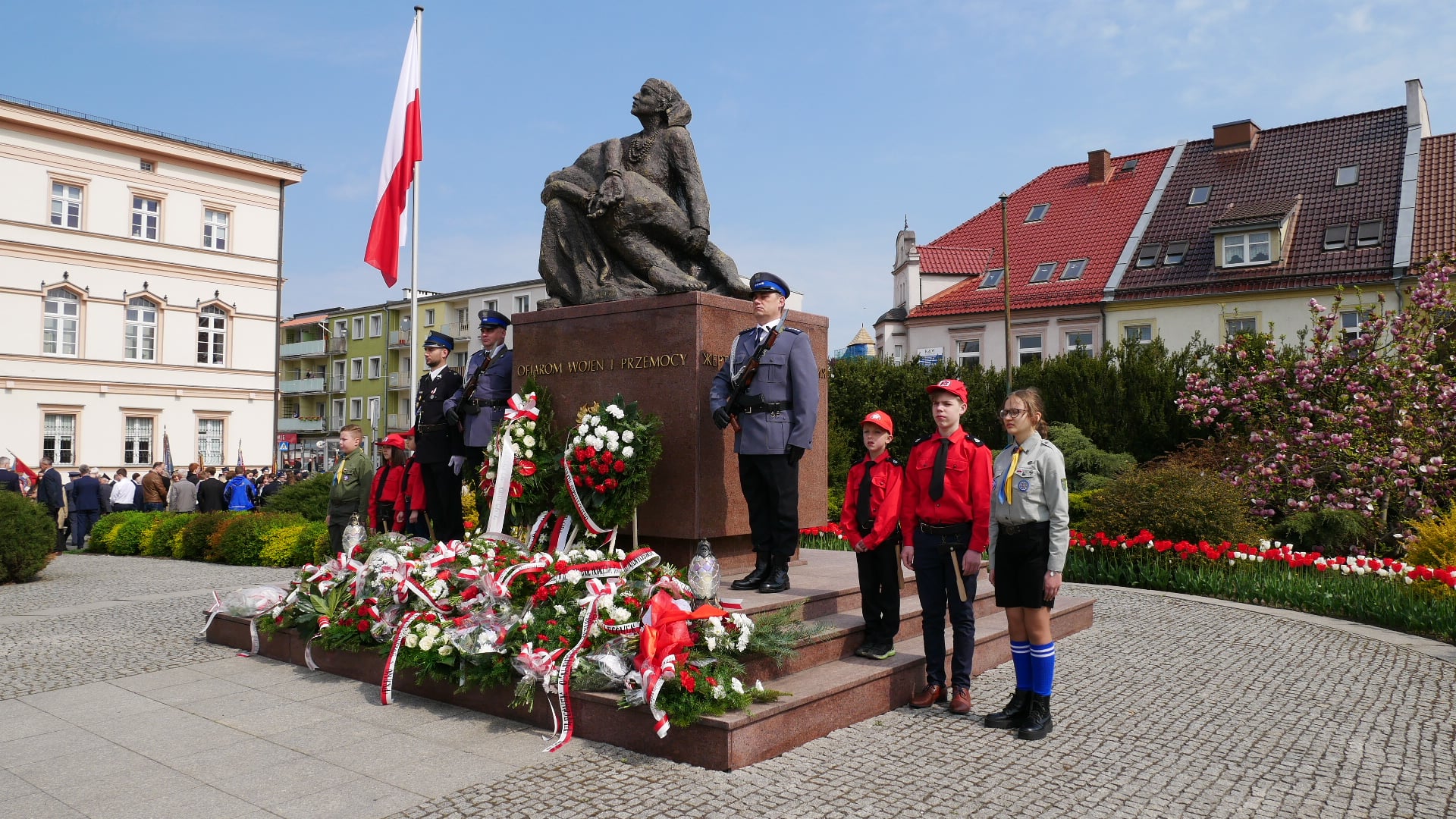 Komendant Powiatowy Państwowej Straży Pożarnej w Strzelcach Opolskich bryg. Paweł Poliwoda uczestniczył w obchodach Święta Konstytucji 3 Maja. Przed Pomnikiem Ofiar Wojen i Przemocy wspólnie z kierownictwem służb mundurowych z terenu powiatu strzeleckiego złożył kwiaty.