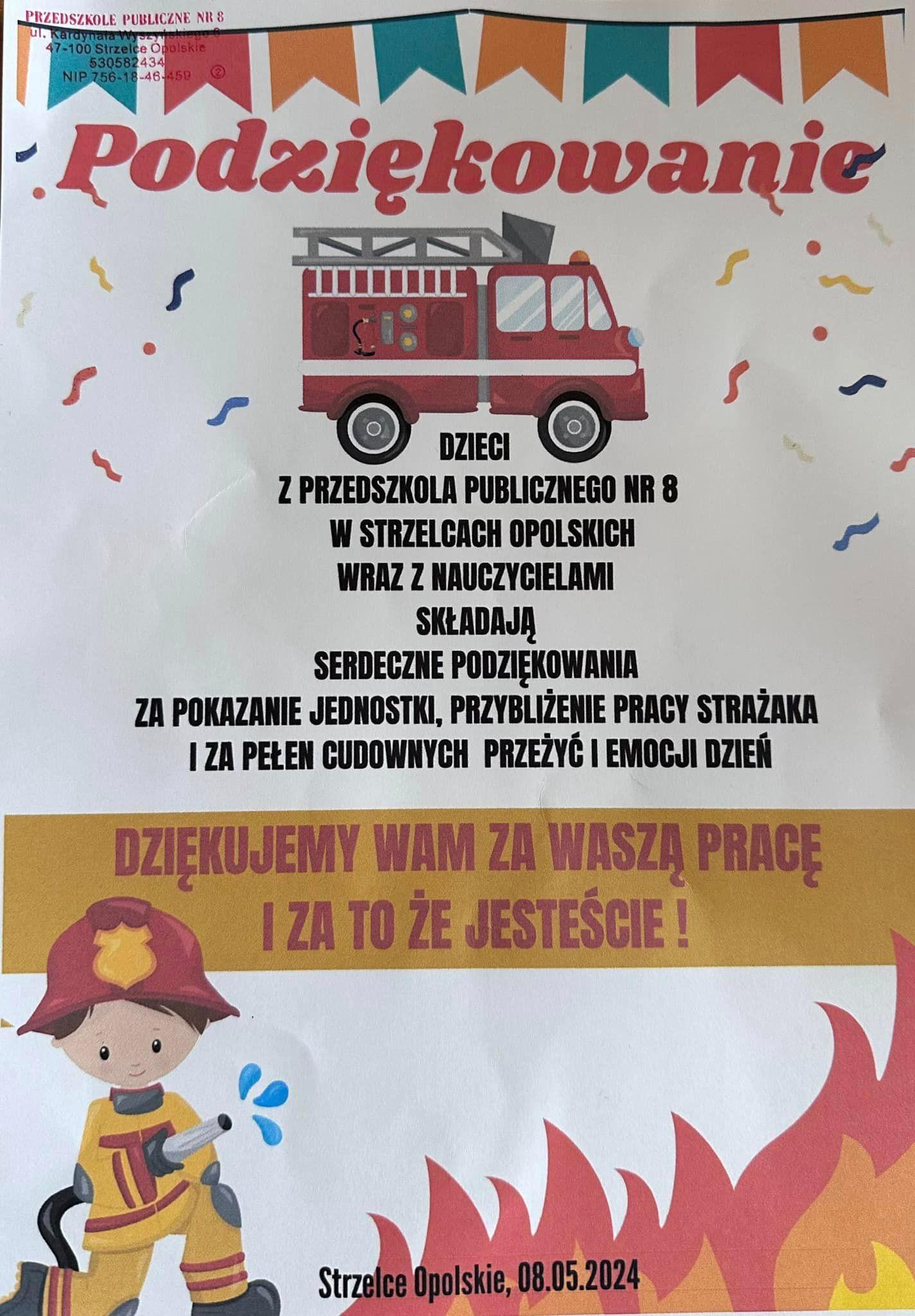 W dniu dzisiejszym naszych strażaków odwiedziły dzieci z Publicznego Przedszkola nr 8 w Strzelcach Opolskich.