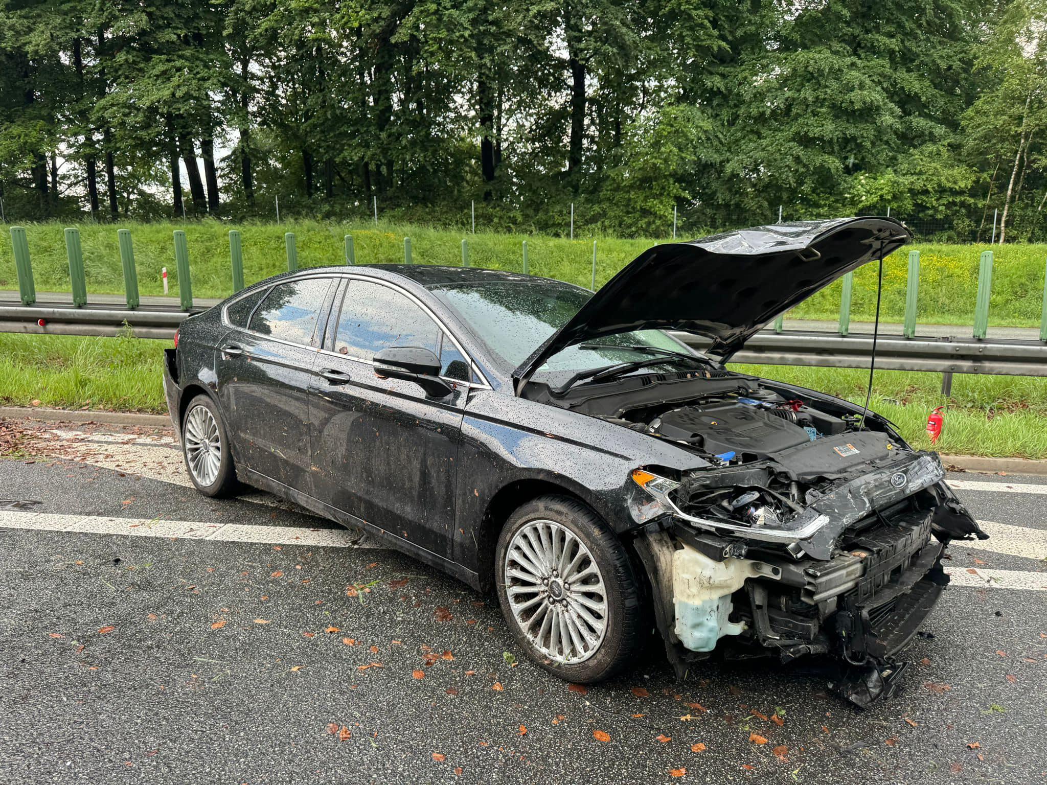 Po przybyciu na miejsce zdarzenia strażacy ustalili, że samochód osobowy wjechał w barierki energochłonne. Samochodem podróżowali kierowca (nie wymagał pomocy medycznej) i pasażerka w ciąży, która została poszkodowana. Autostrada na czas prowadzonych działań ratowniczych była całkowicie zablokowana.