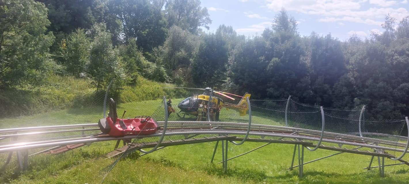 14 sierpnia 2023 r. o godzinie 11:29 otrzymaliśmy informację o zdarzeniu na terenie zjeżdżalni grawitacyjnej na Górze św. Anny. Do zdarzenia udały się zastępy z JRG Strzelce Opolskie, OSP Wysoka i OSP Leśnica. Na miejscu w trakcie rozpoznania strażacy ustalili, że w wyniku zdarzenia ranne zostały trzy osoby: dwóch chłopców w wieku 7 i 8 lat oraz 25 letnia także kobieta.