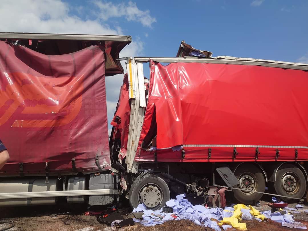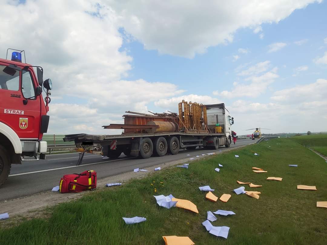 Wypadek z udziałem trzech samochodów ciężarowych na Autostradzie A4
