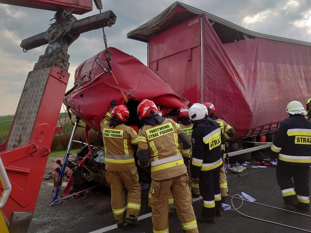 29 kwietnia 2022 roku przed godziną 12 na autostradzie A4 267,3 km w kierunku na Katowice miał miejsce wypadek z udziałem trzech samochodów ciężarowych. Kierowca pojazdu ciężarowego, który najechał na tył naczepy samochodu ciężarowego został zakleszczony w kabinie pojazdu, a poprzedzający pojazd ciężarowy przewożący materiały budowlane został przez drugi pojazd uderzony i przesunięty kilkanaście metrów. Dwóch kierowców opuściło pojazdy o własnych siłach i nie wymagało pomocy medycznej. Do zdarzenia udały się dwa zastępy z JRG KP PSP w Strzelcach Opolskich wraz z grupą operacyjną oraz dwa zastępy z OSP Wysoka i jeden zastęp OSP Leśnica. Na miejscu zdarzenia lądował śmigłowiec LPR oraz na miejsce wypadku dojechały dwie karetki i patrol Policji. Po zrobieniu przez strażaków dostępu do poszkodowanego kierowcy pojazdu ciężarowego ratownicy medyczni rozpoczęli działania. Niestety pomimo podjętych działań ratowniczych medycy stwierdzili zgon kierowcy. Działania strażaków skupiły się na odłączeniu akumulatorów w pojazdach, ugaszeniu palących się elementów komory silnika pojazdu ciężarowego, sorpcji rozlanych płynów eksploatacyjnych oraz paliwa. Ponadto w jednym z pojazdów rozszczelnił się zbiornik z paliwem, z którego ratownicy wypompowali olej napędowy do beczek zastępczych. Na czas prowadzonych działań ratowniczych ruch w kierunku Katowic był całkowicie wstrzymany. Na miejscu swoje czynności realizowali policjanci pod nadzorem prokuratora. Po zakończonym śledztwie strażacy przy pomocy sprzętu hydraulicznego uwolnili zakleszczonego kierowcę.
