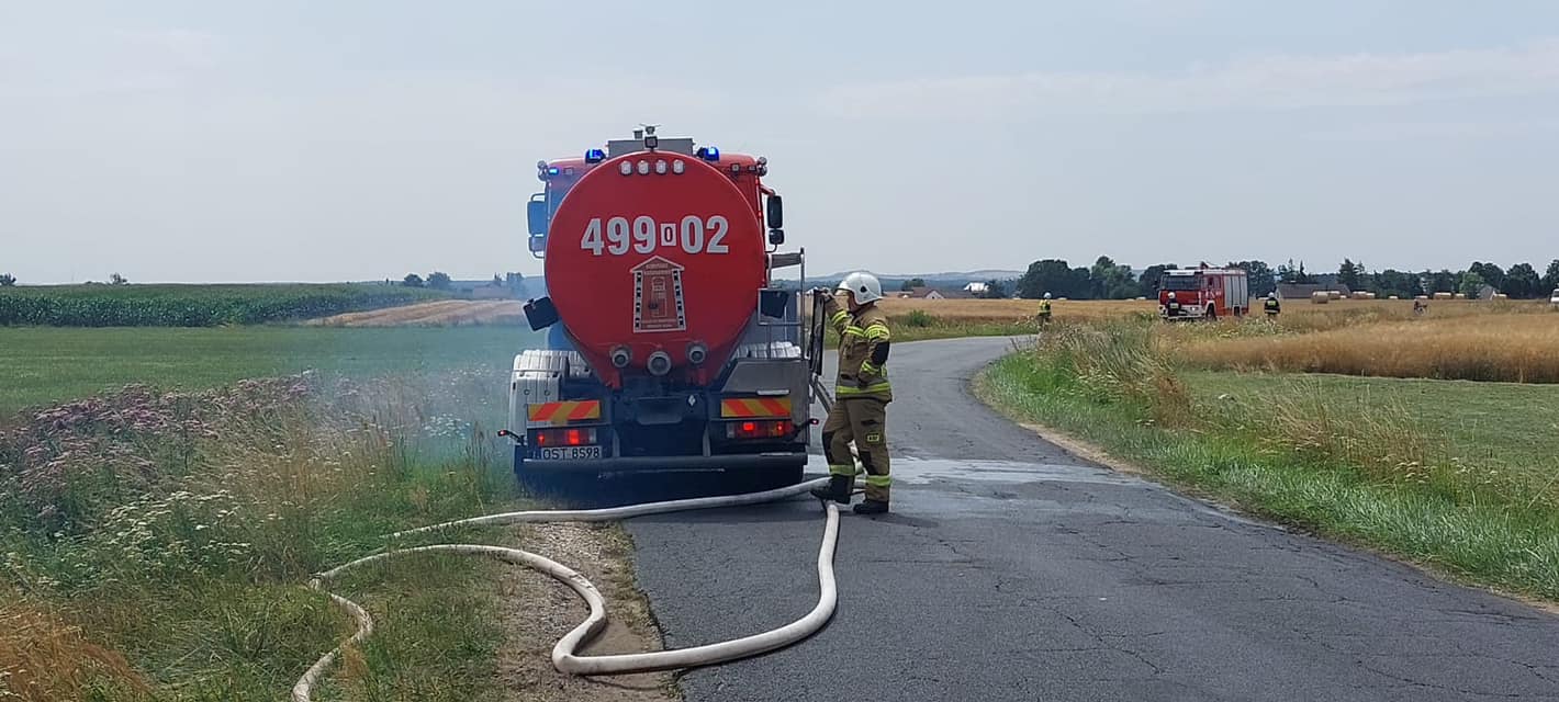 Pożary upraw i sprzętu w czasie żniw w dniu 24.07.2023 r na terenie powiatu strzeleckiego: