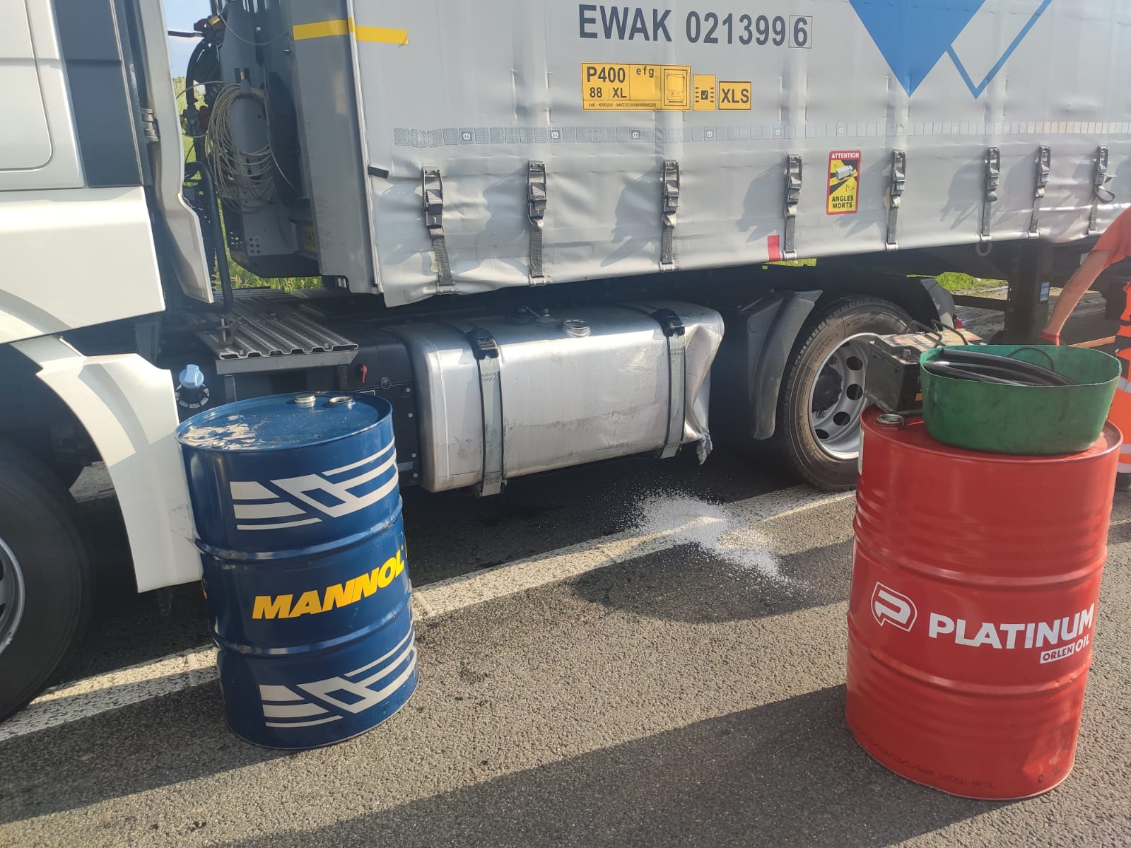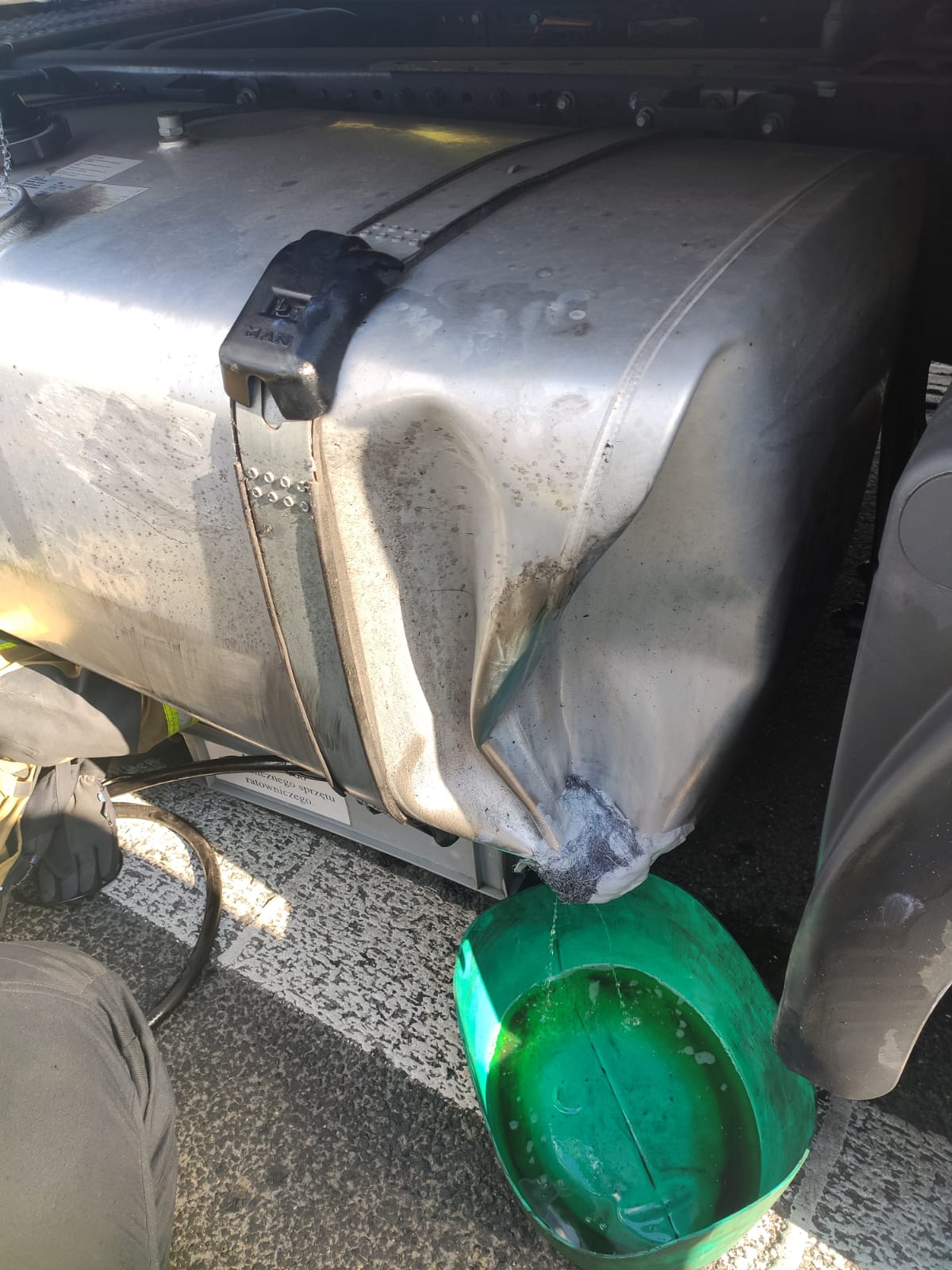 - przepompowaniu paliwa z uszkodzonego zbiornika do beczek zastępczych,