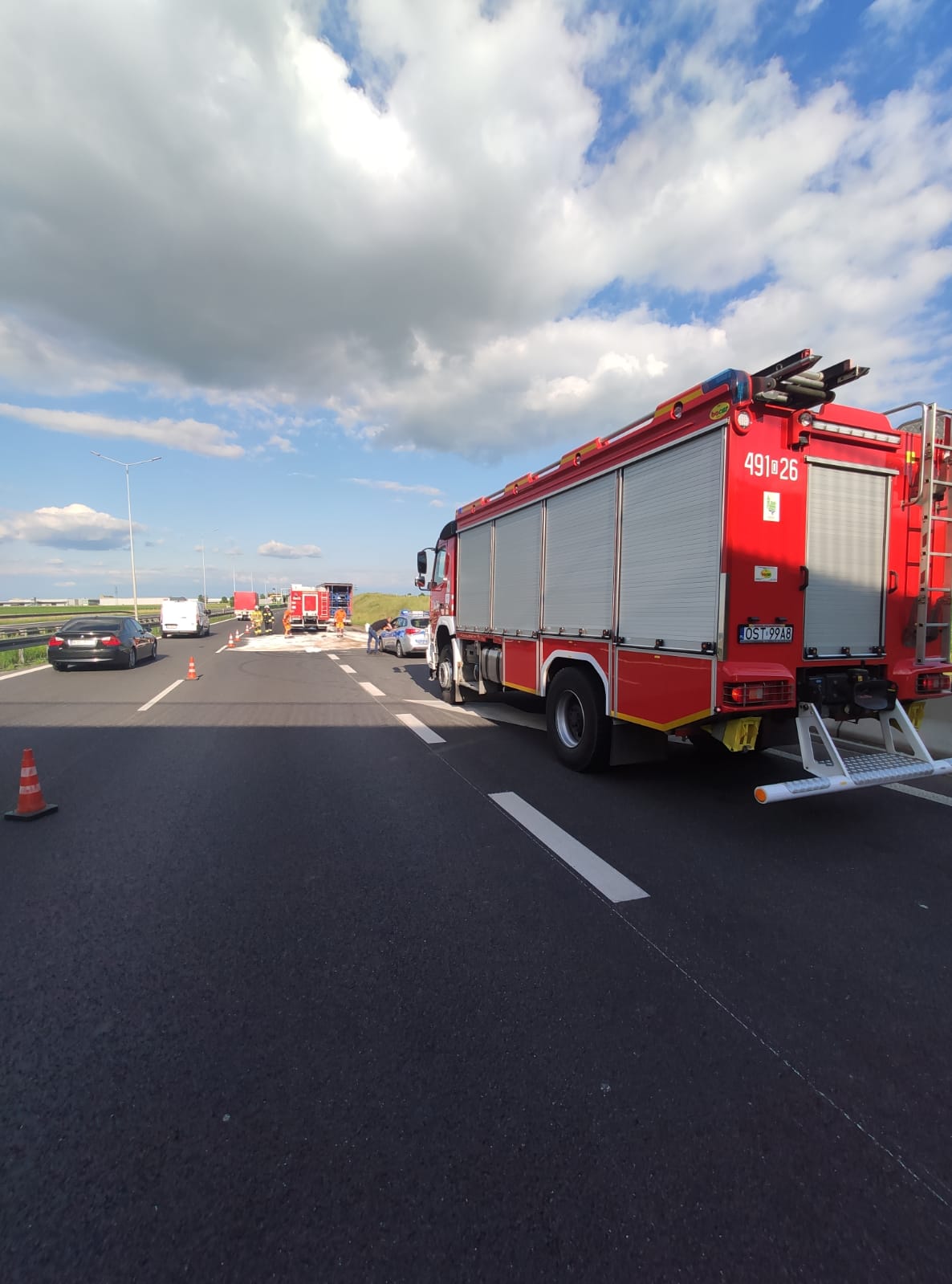 10.06.2022 przed 17:00 na A4 na 273 km doszło do kolizji samochodu osobowego z samochodem ciężarowym. Samochodami podróżowali tylko kierowcy, którzy opuścili pojazdy i nie wymagali pomocy medycznej. W trakcie kolizji doszło do rozszczelnienia zbiornika na paliwo w samochodzie ciężarowym.