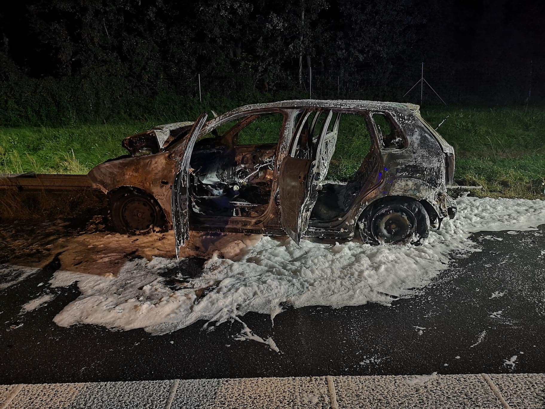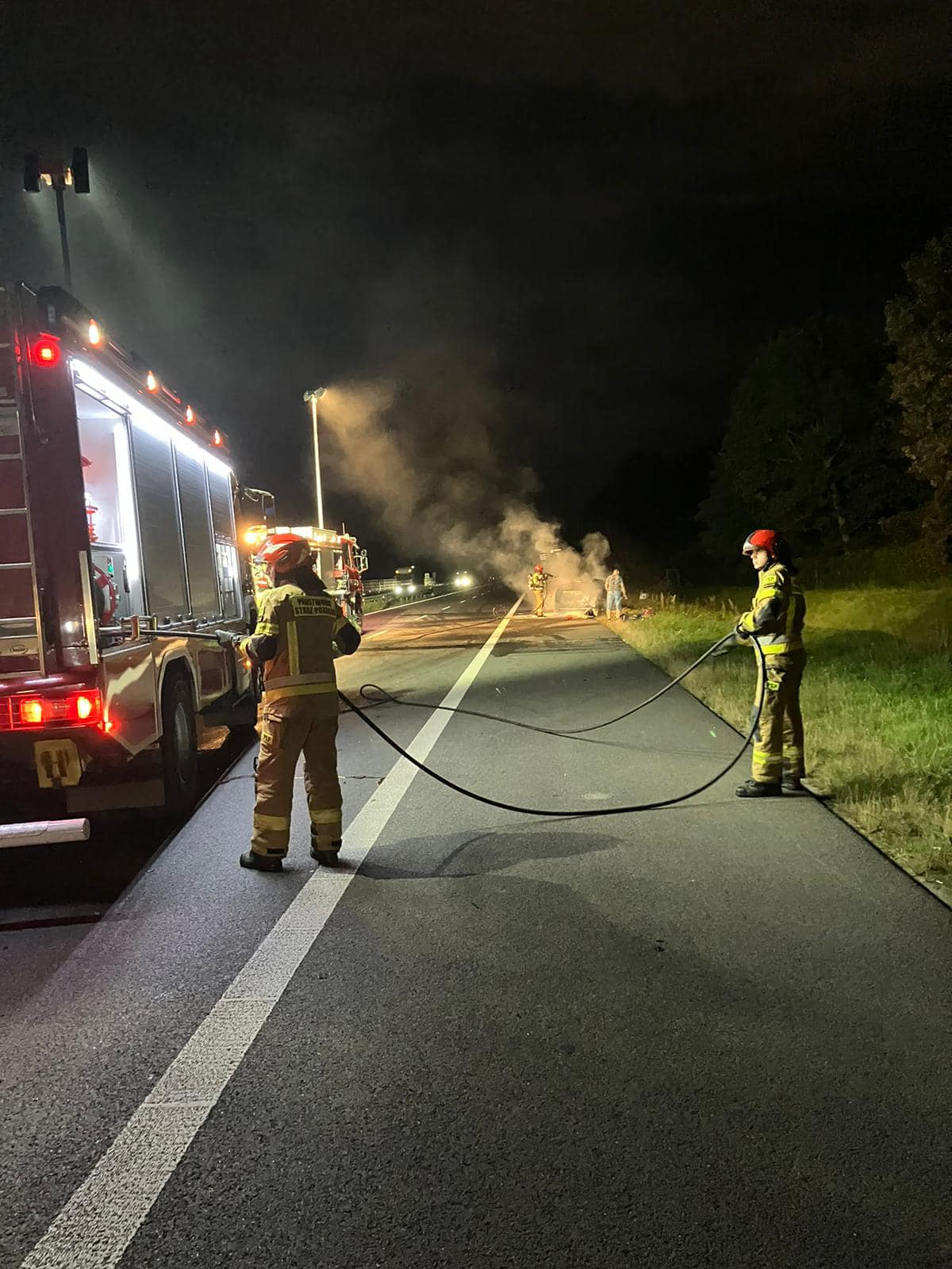 Działania straży pożarnej polegały na zabezpieczeniu miejsca zdarzenia, oświetleniu terenu działań, ugaszeniu pojazdu oraz sprawdzeniu przy użyciu kamery termowizyjnej celem wyeliminowania zarzewi ognia.