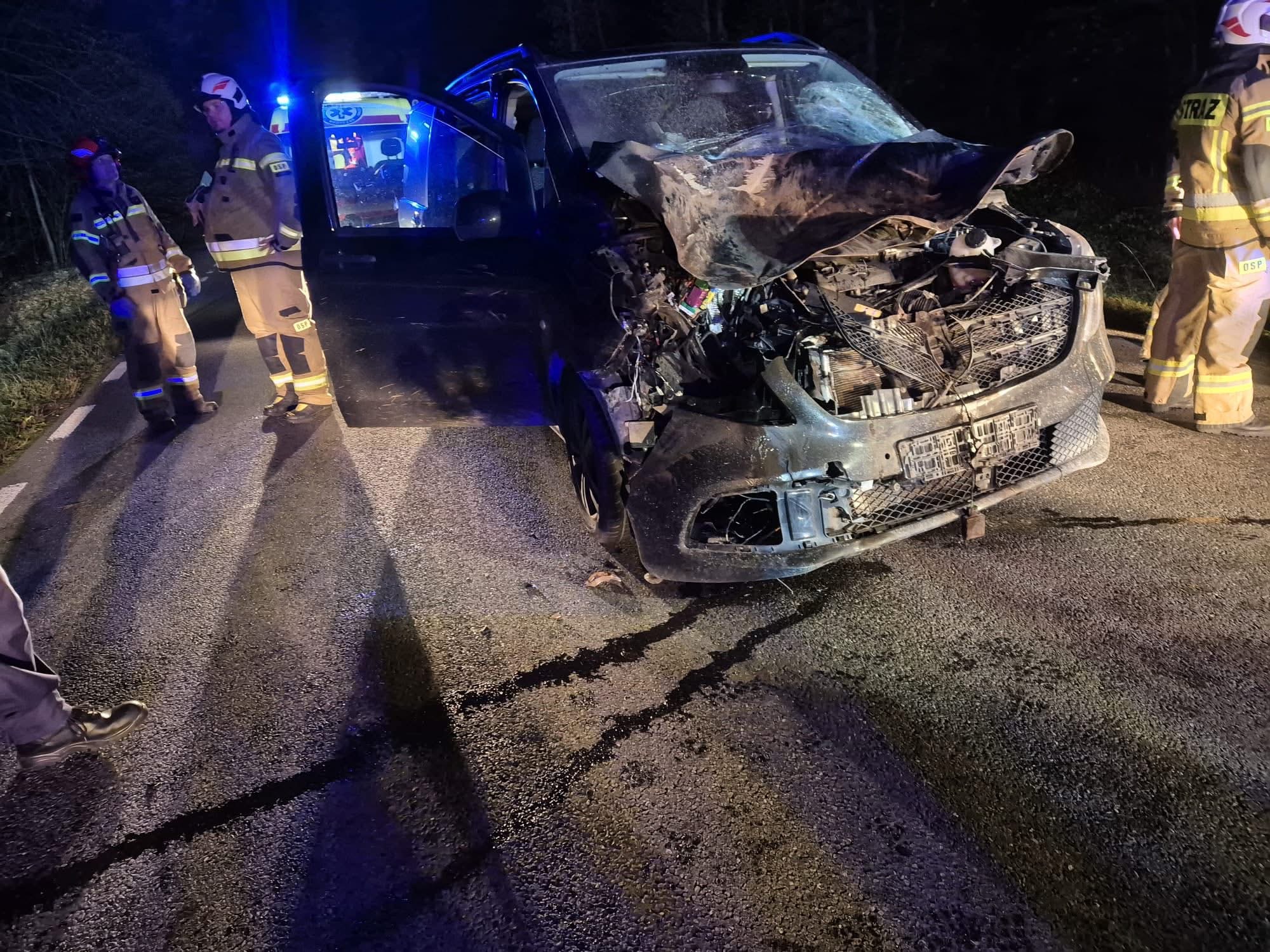 Samochód osobowy zderzył się ze zwierzęciem. Pojazdem podróżowały trzy osoby dorosłe oraz dziecko. Wszystkie zostały przebadane przez Zespół Ratownictwa Medycznego, a jedna osoba z urazem głowy trafiła do szpitala.