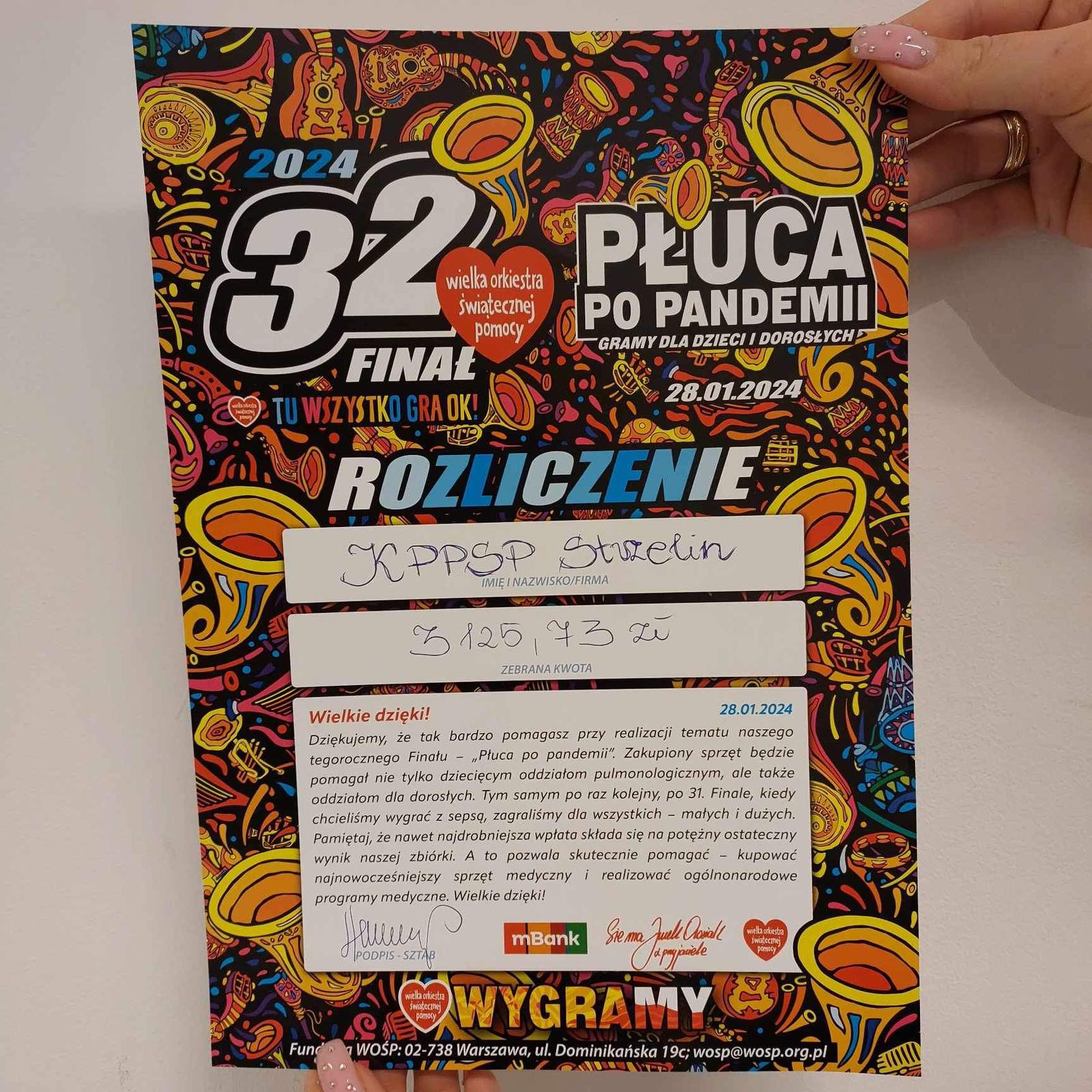 W ramach 32. Finału WOŚP do strażackich puszek trafiła kwota 3125,73 zł, nie licząc kwoty z wylicytowanych gadżetów. Ogromnie dziękujemy!